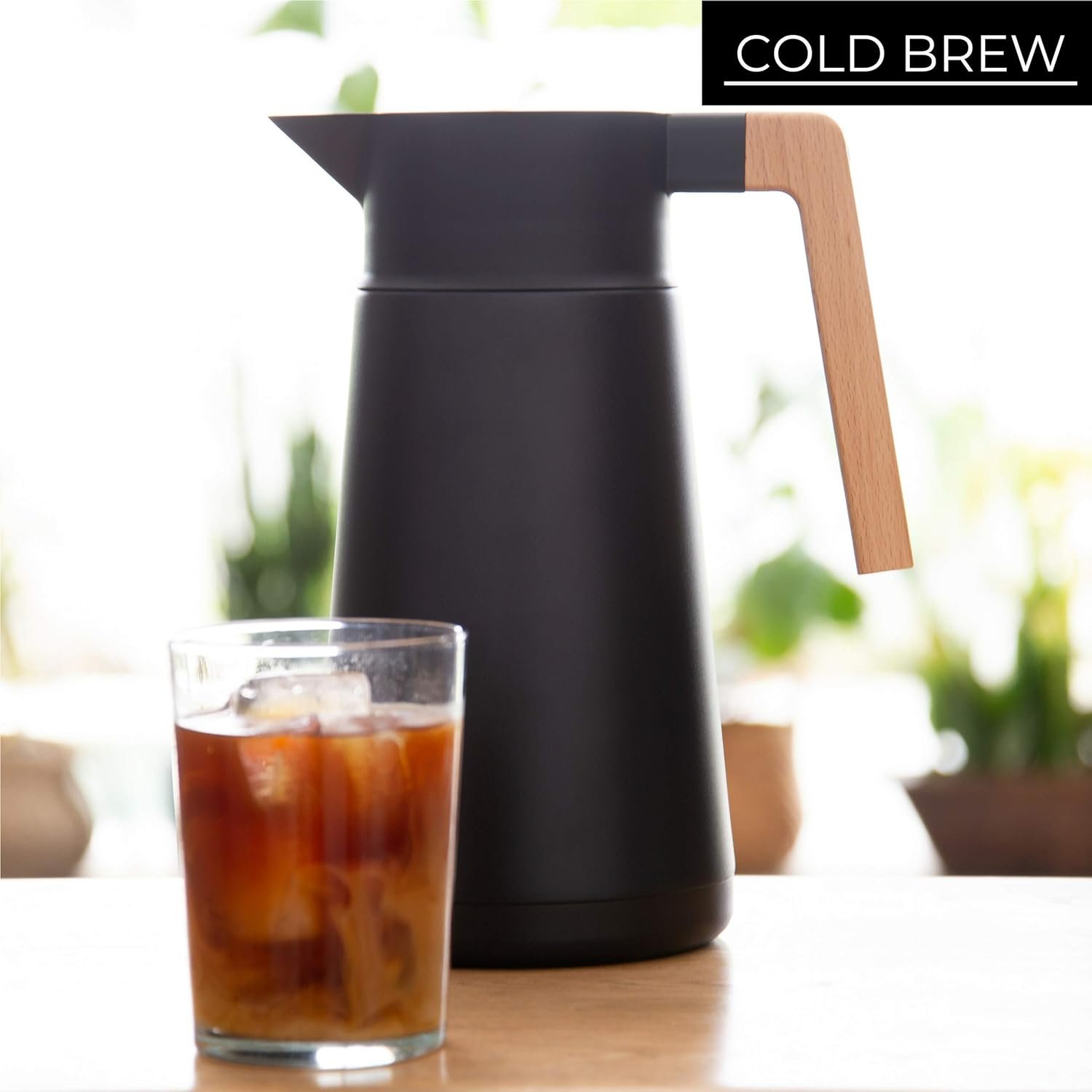 VACUUM INSULATED carafe for coffee, juice or water. Also makes great cold brews. Designed for maximum temperature retention. Perfect coffee thermos carafe for: home, office or travel use