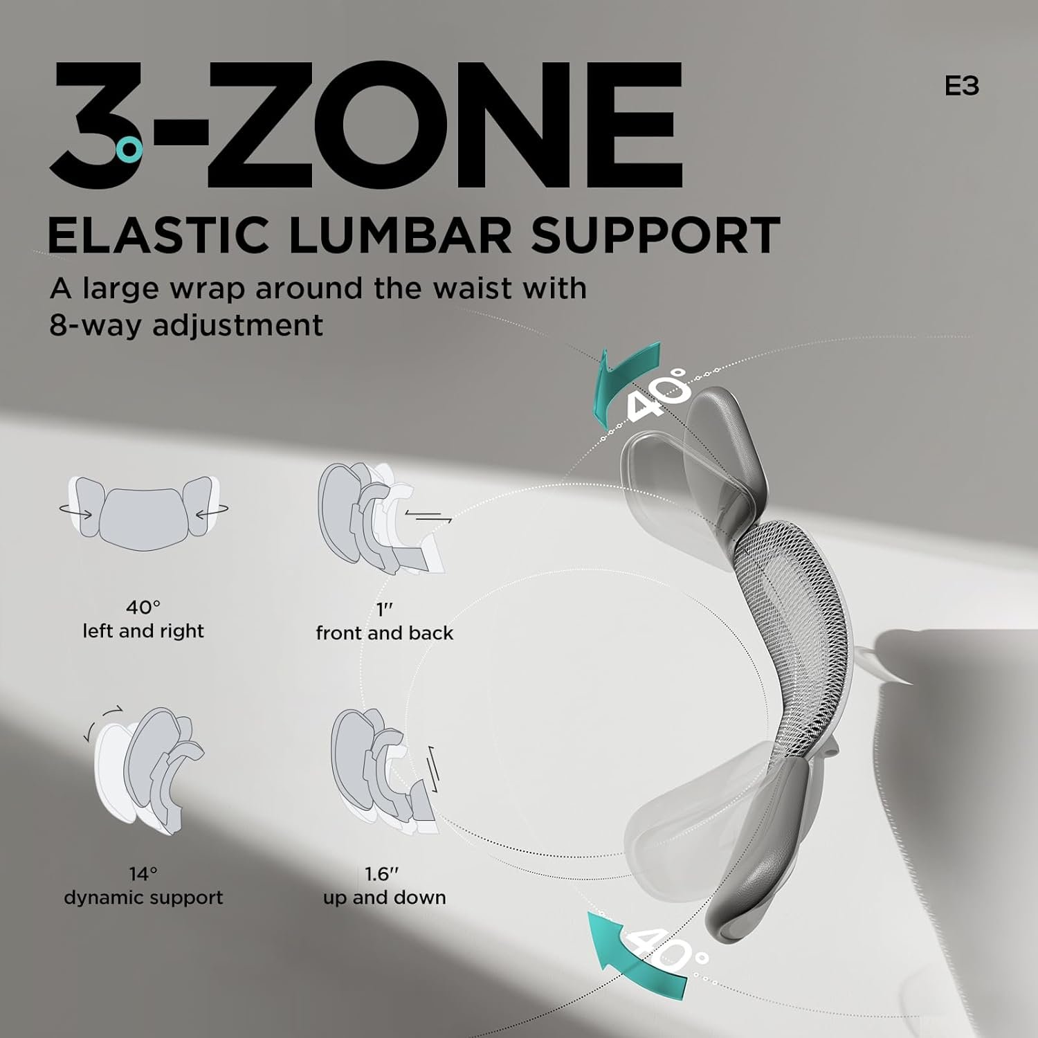 【Three-zone Elastic Lumbar Support】The lumbar support of this desk chair makes sure a large wrap around the waist with 8-way adjustment. The left and right floating wings rotate 40° internally and externally, it also can be adjusted front and back by 1” and up and down by 1.6″ with a 14° dynamic support. Undoubtedly you can enjoy a long-time sitting with such amazing lumbar support.