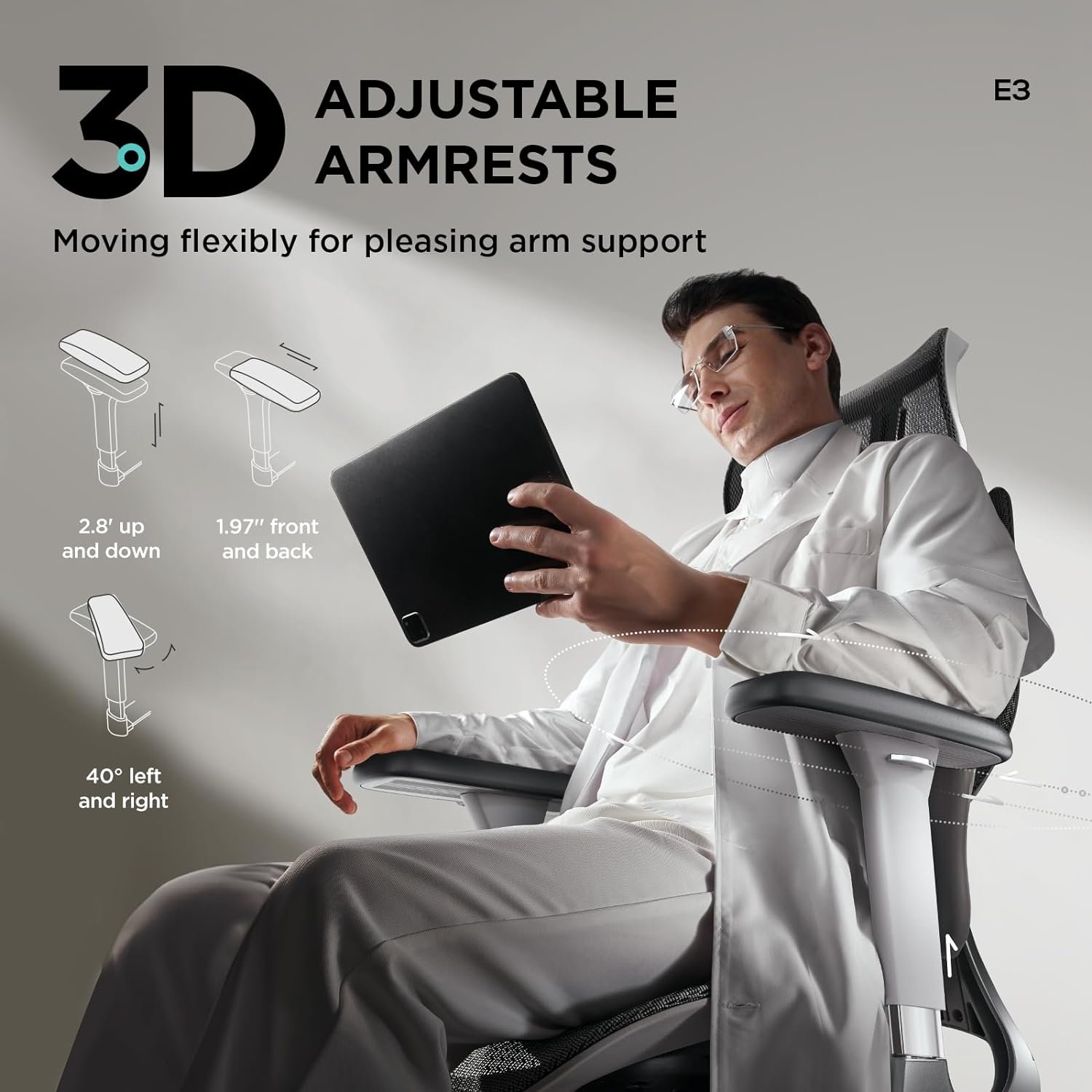 【Innovative Ergonomic Office chair】Hbada E3 ergonomic office chair combines the latest technologies to help you maintain a comfortable posture and live a healthy lifestyle. This office chair comes with elastic lumbar support, 3D adjustable headrest and armrests, durable and breathable mesh, 140 degree reclining, adjustable seat depth and gravity-sensing chassis, offering lasting comfort even after all day sitting.