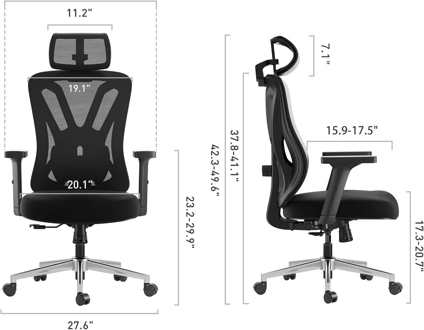 【Ergonomic Office Chair】 The Hbada office chair is ergonomically designed to provide full support for your back, lumbar region, hips, and arms. It features an S-shaped desk chair backrest that perfectly conforms to your back, providing optimal support for your spine and enabling a comfortable and sedentary lifestyle. This ergonomic office chair enhances your sitting posture, allowing you to experience the utmost comfort even during busy workdays.Suitable for people 5′ to 5’85” tall.
