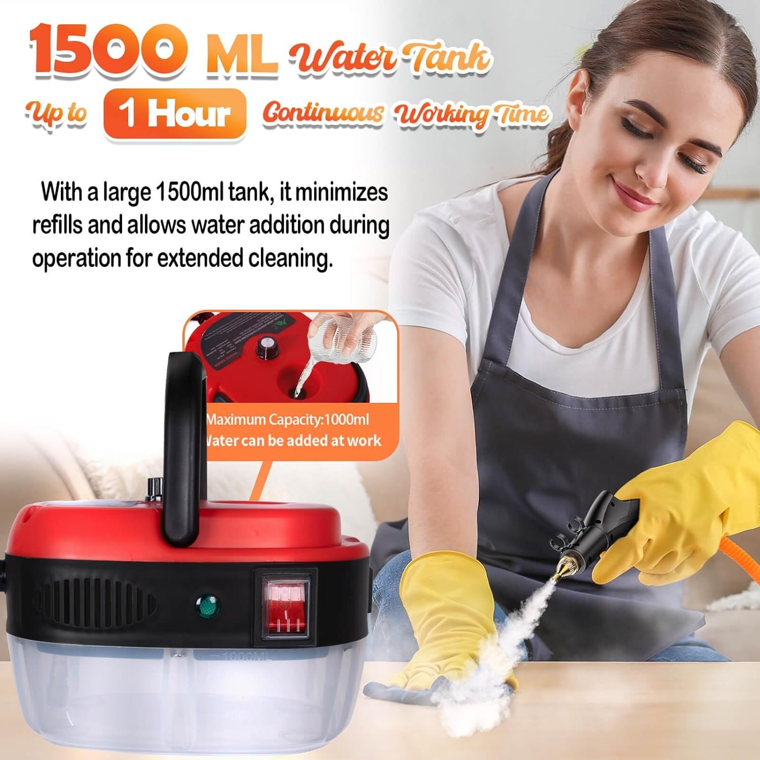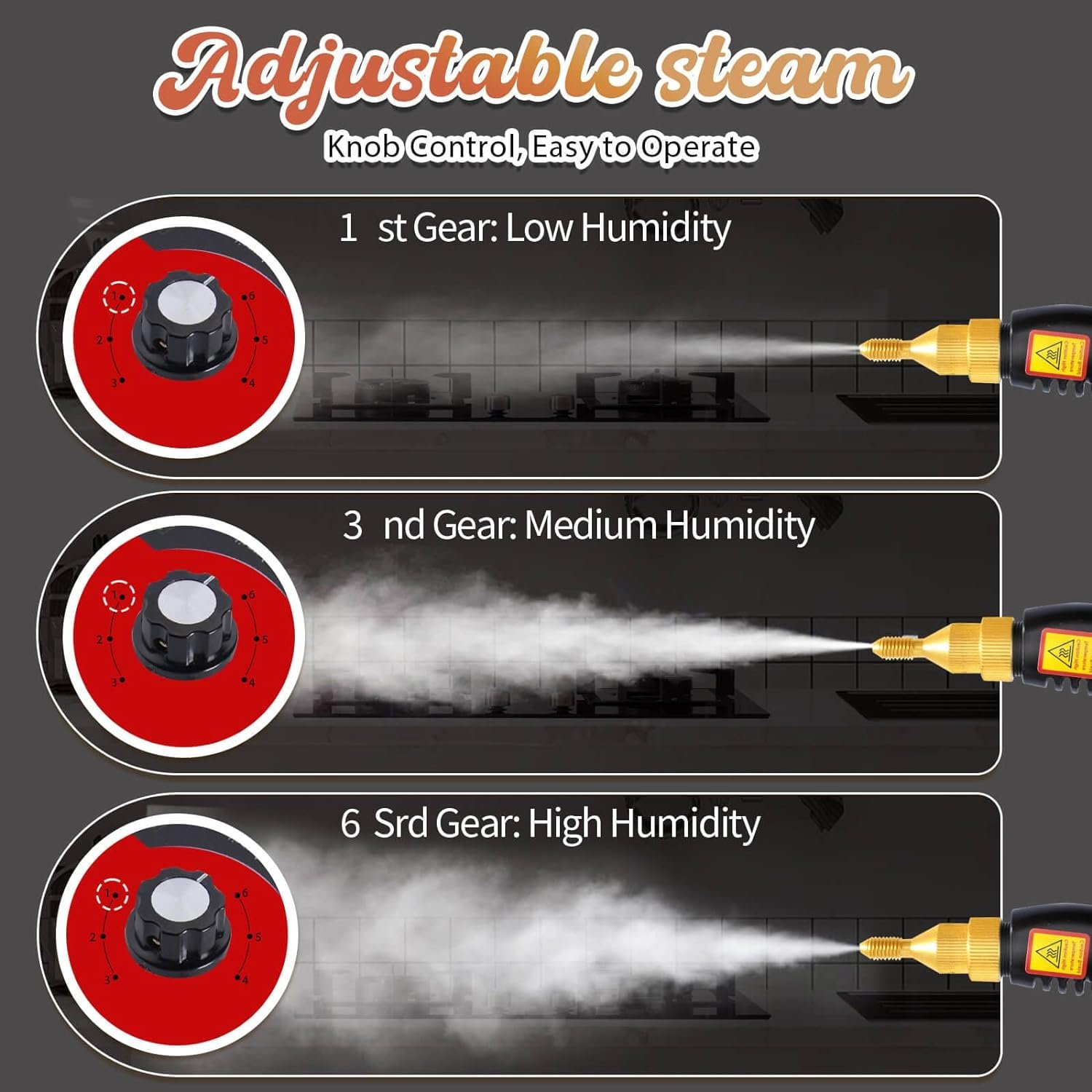 🎅🎅【2500W High Temperature & Pressure Steam Cleaner】 The working power of the steam cleaner is 2500W, its heats up quickly in 10-15 seconds, reaching 221°F/105°C, which is super powerful and can easily and thoroughly loosen and dissolve dirt, cut grease, dirt and expel stains.