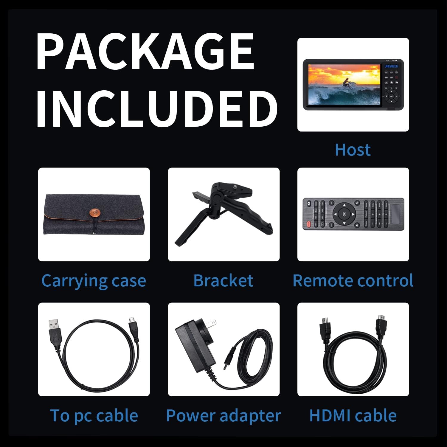 UR500 x 1Holder x 1HDMI Cable 1.2M x 1USB2.0 Cable 0.8M x 1Power Supply x 1Remote Contro x 1Manual x 1