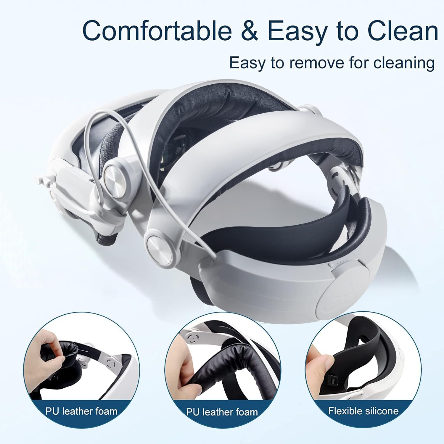 Upgraded Cushions: 8VR for quest 3 battery strap enhanced wearing comfort and reduced wearer fatigue with soft PU leather foam cushions on the front and top and a soft silicone flexible support brace on the back. Removable design makes the pads and support brace easy to clean.