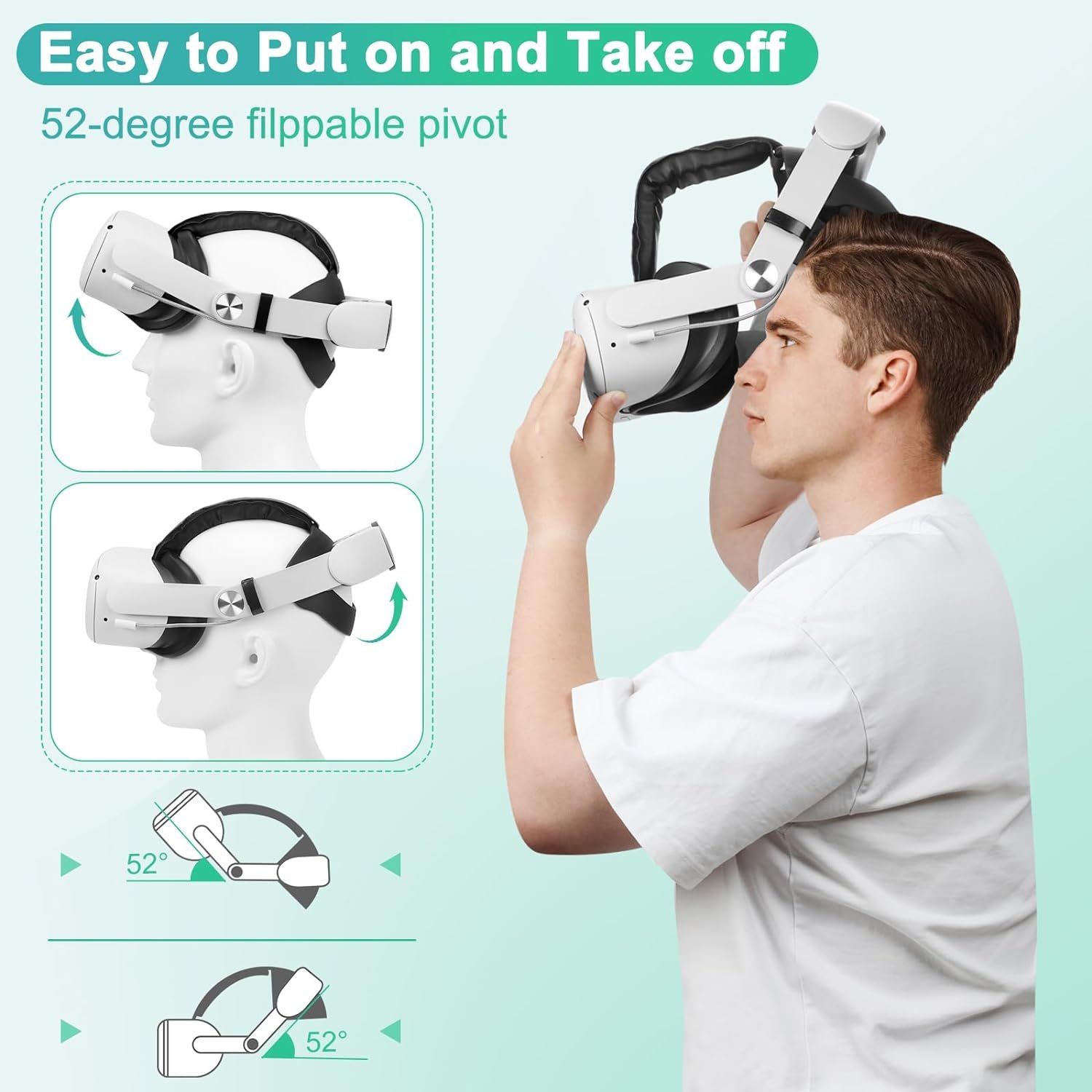 Improved Side Straps: Our elite strap with battery is made of durable and sturdy eco-friendly upgraded nylon PA material. The side strap that can bend up to 10,0000+ times, no longer worry about side strap damage. And a 52° adjustable hinge design allows for effortless wearing and taking off by lifting the VR headset up slightly.