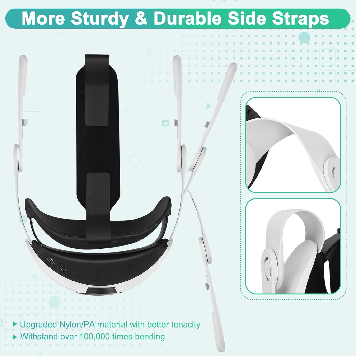 The side straps are constructed with durable nylon PA material, capable of enduring over 100,000 bends. Say goodbye to concerns about strap breakage and enjoy a better VR experience.