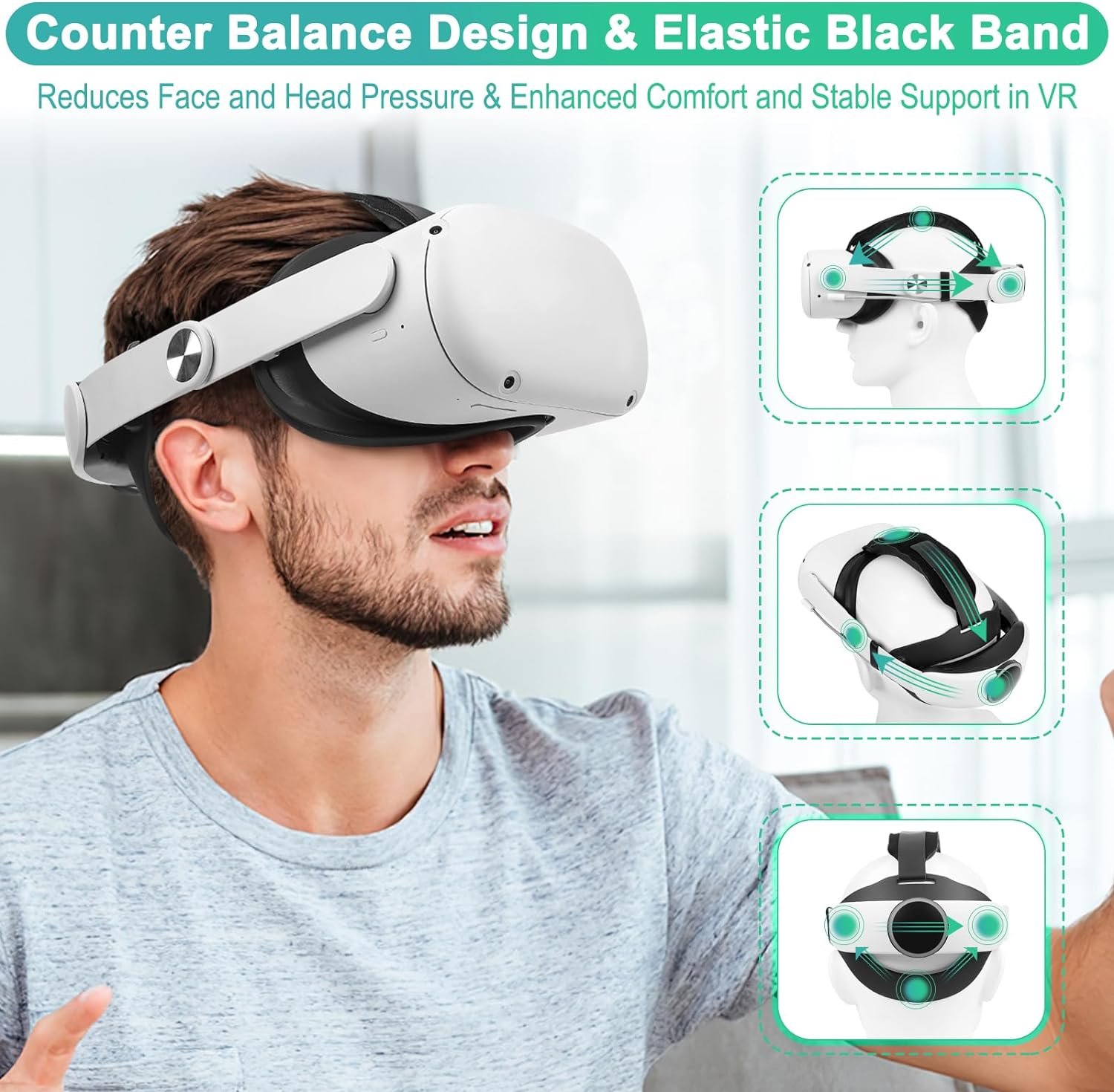 Reduce Facial Pressure: The gravity balance and distributed design is adopted, so that the gravity of the Meta Quest 2 is evenly distributed in different positions of the head, reducing facial pressure. Designed with a 360° rotatable knob, this head strap with battery pack can be freely adjusted to the most comfortable state to adapt to different sizes of head shapes.