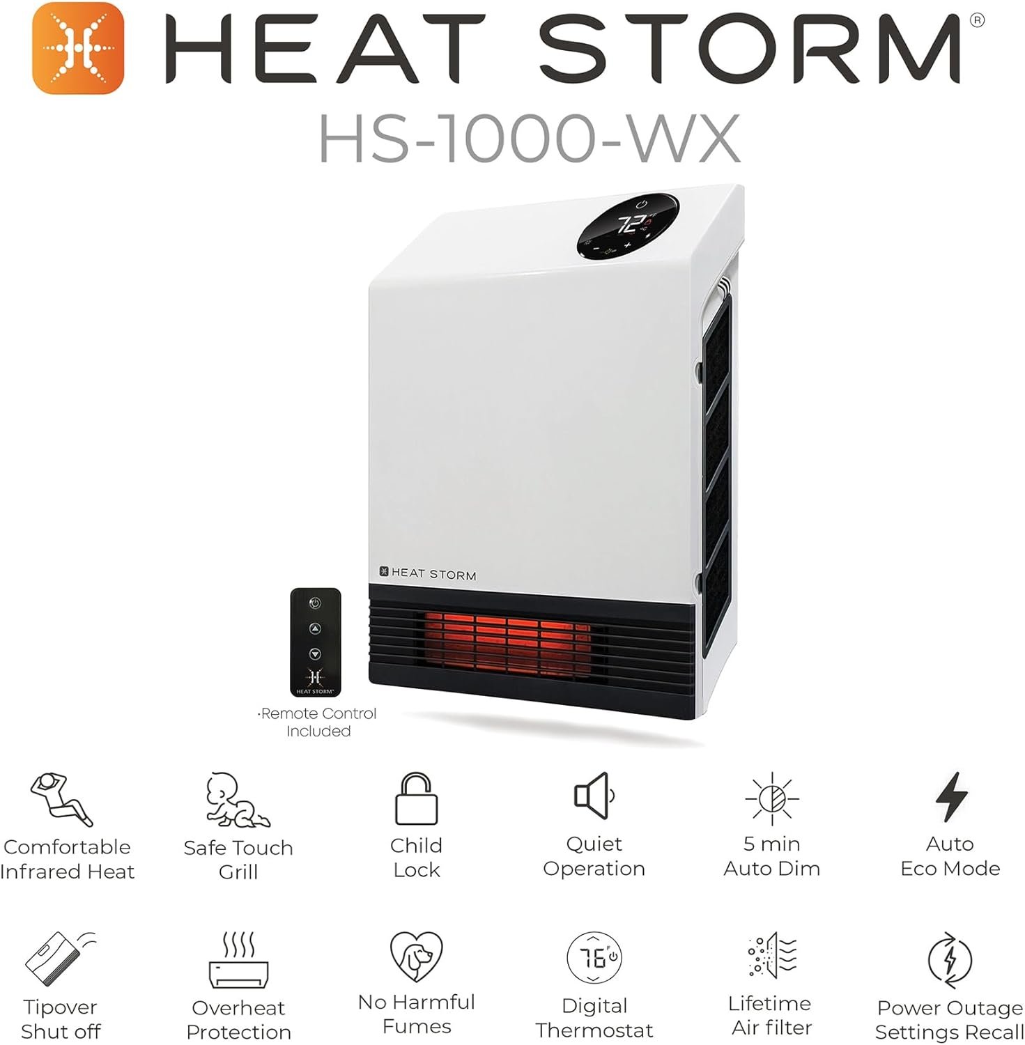 We’re proud to introduce the worlds first quartz infrared wall space heater. Within just a few minutes of arrival you can have this sleek profile wall heater up and running. It is the perfect solution for bedrooms and offices, or any room where there isn’t much floor space. It is designed to allow for other electrical devices on the same circuit without tripping your breaker. This heater incorporates our patented HMS technology for the most efficient heat output. A great benefit of infrared heat is that is heats up objects in the room instead of just heating up the air. This means that once the room heats up, its much easier to maintain the heat because the surrounding objects like walls and other objects will then radiate the heat back into the room kind of like the warm sunlight coming through a window. Another reason people have been really excited is that our heaters are safe to touch (even on the grill! ). This makes our heaters awesome for families with kids and pets. Even If they get curious and touch the grill, their hands are not going to get burned. Each of our heaters are ETL listed meaning that they are tested by ETL to the same standards as UL and their certification has the same recognition by OHSA since they are both Nationally Recognized Testing Laboratories. “The ETL, Edison Testing Laboratories, Listed Mark is proof of product compliance (electrical, gas and other safety standards)” It also has built in overheat protection. This means that if an obstruction covers the grill and the inside temperature gets too hot, it automatically shuts off power to the unit. A great benefit of wall mounting is that not only does it take up less space, it also prevents accidents or hazards associated with space heaters. This is a great heater for the price! We have made many improvements over the years and continue to develop products to keep you warm this winter! Digital Thermostat: Our digital touch screen thermostat makes it easy to read the current temp and easy to make adjustments to the desired room temperature. With the simple operation via touch screen or remote control. (This unit DOES NOT have Wi-Fi control) Power Outage Settings recall: Our heaters are more reliable because of our power outage settings recall. This is extremely important for remote locations such as rooms that need the pipes from freezing. Lifetime Air Filter: Larger Dust and dander particles get captured in our lifetime filters. Just remove, wash, and re-install for better quality of air in your home. Safe Touch Grill: Our grill is safe for kids and pets. that’s because its made out of material that absorbs heat instead of transfers it (unlike metal grills that sear skin) Our heaters operate at around 40-44 decibels, similar to the ambient noise level in a library or a quiet office. This level of sound can be compared to a soft whisper or the gentle hum of a refrigerator.