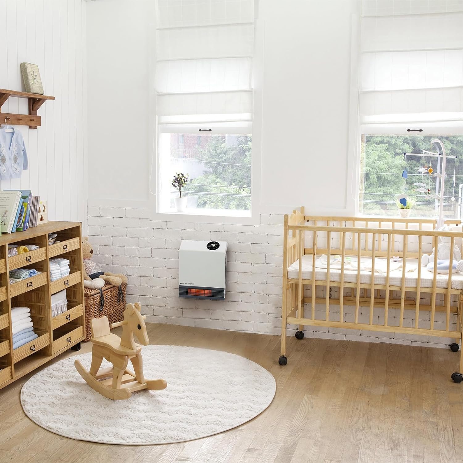 COMPACT – Uses less than 2 square feet of wall space and plugs into a normal 110v outlet. When installed over the outlet, you can hide the cord behind the heater.