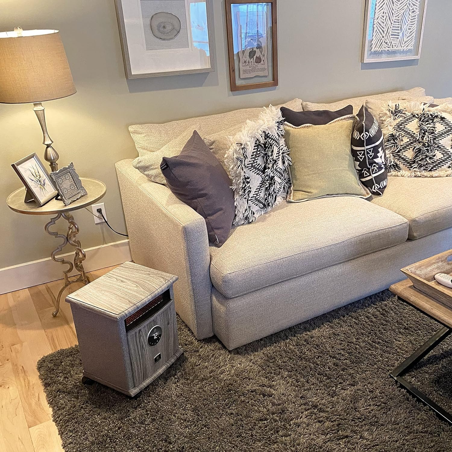 A built-in thermostat with LED display shows you what the ambient temperature is and helps regulate the temperature efficiently. Included remote control allows you to control the temperature with ease.