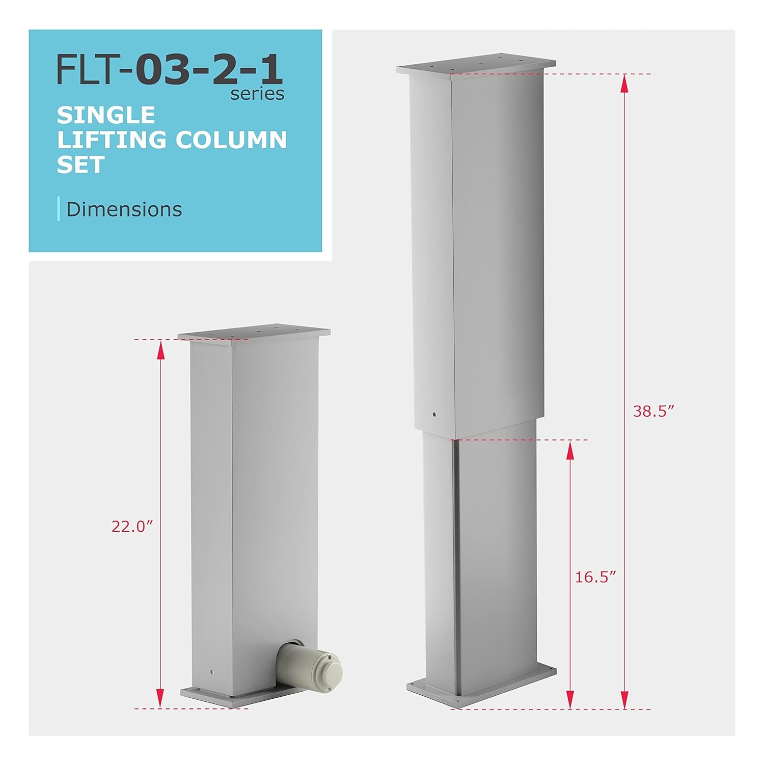 The FLT-03-2-1 lifting column set has a starting height of 22.8″ and can be fully extended to 37.8″. It has a lifting capacity of 440 lbs for heavier projects. Mounting holes are available on the top and bottom surfaces of the lift column allowing for easy installation, making it easy to transform into a lifting table column.