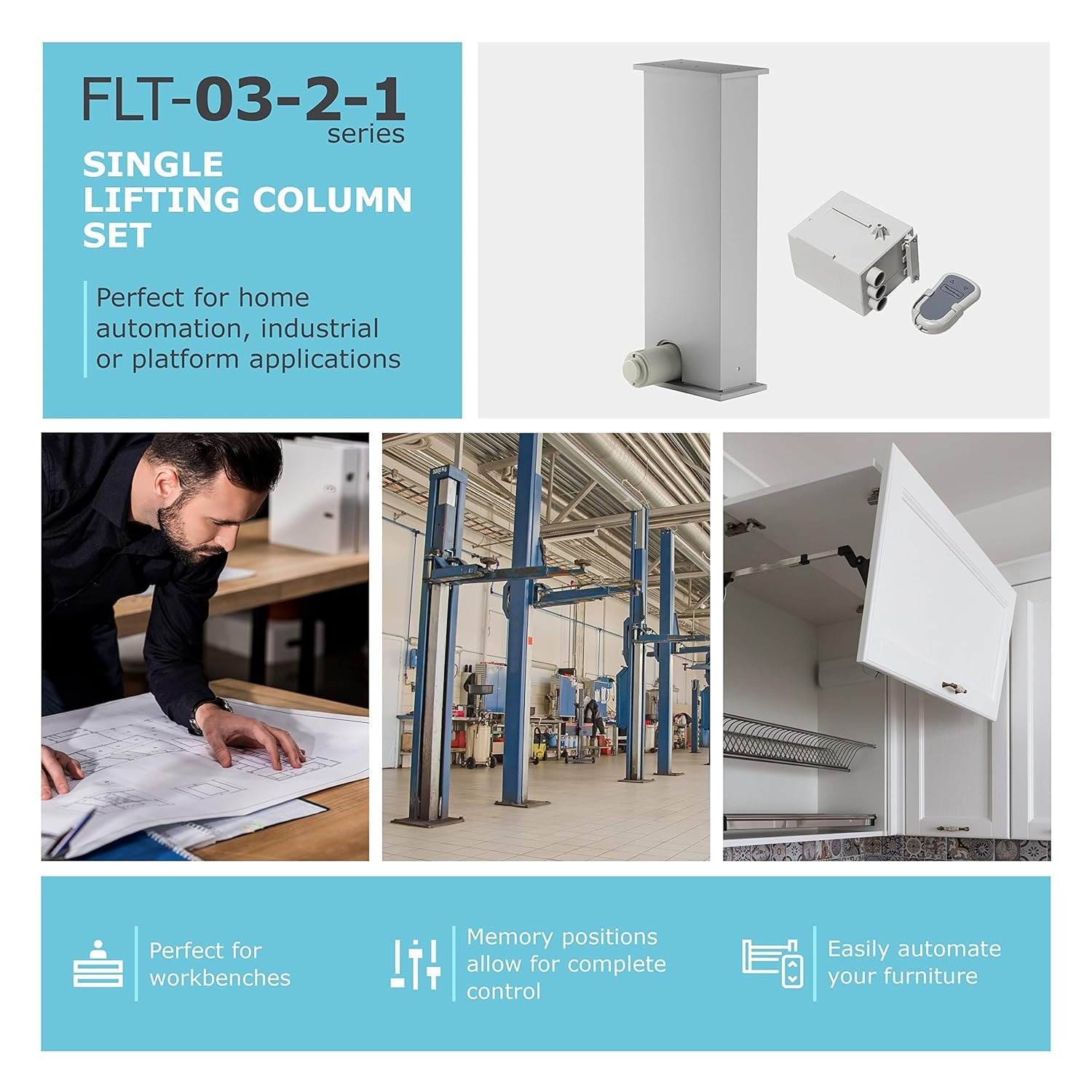 INDUSTRIES – Perfect for applications such as home automation and workstations, the FLT-03-2-1 gives you complete control over height adjustments at the press of a button. The momentary controls require the user to press and hold for continuous motion, adding an additional safety measure when working with heavy equipment.
