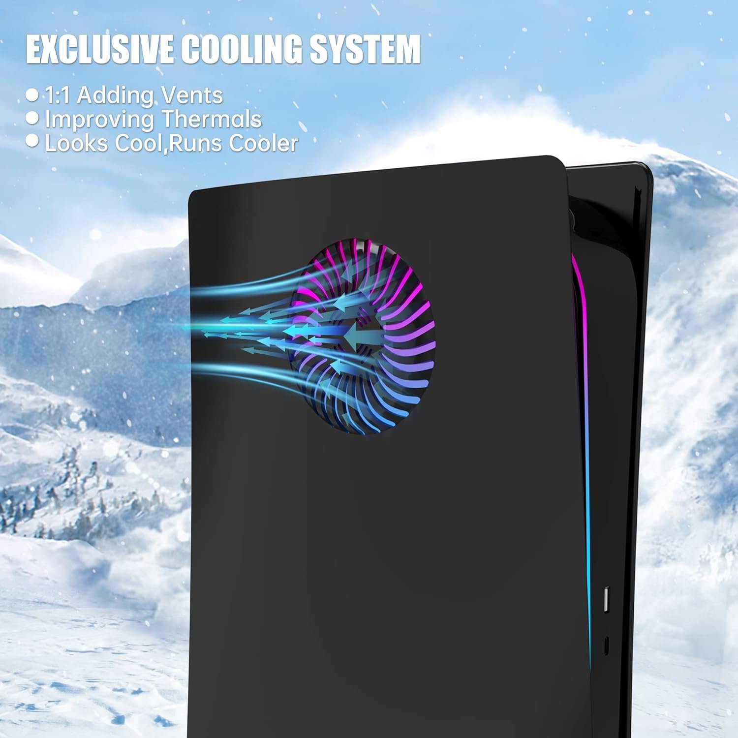 [Thermal Design]: Keep your PS5 console cool with our specially designed side panels. Equipped with cooling vents on both sides, it helps to speed up air circulation and reduce heat buildup, providing you with a smoother gaming experience!
