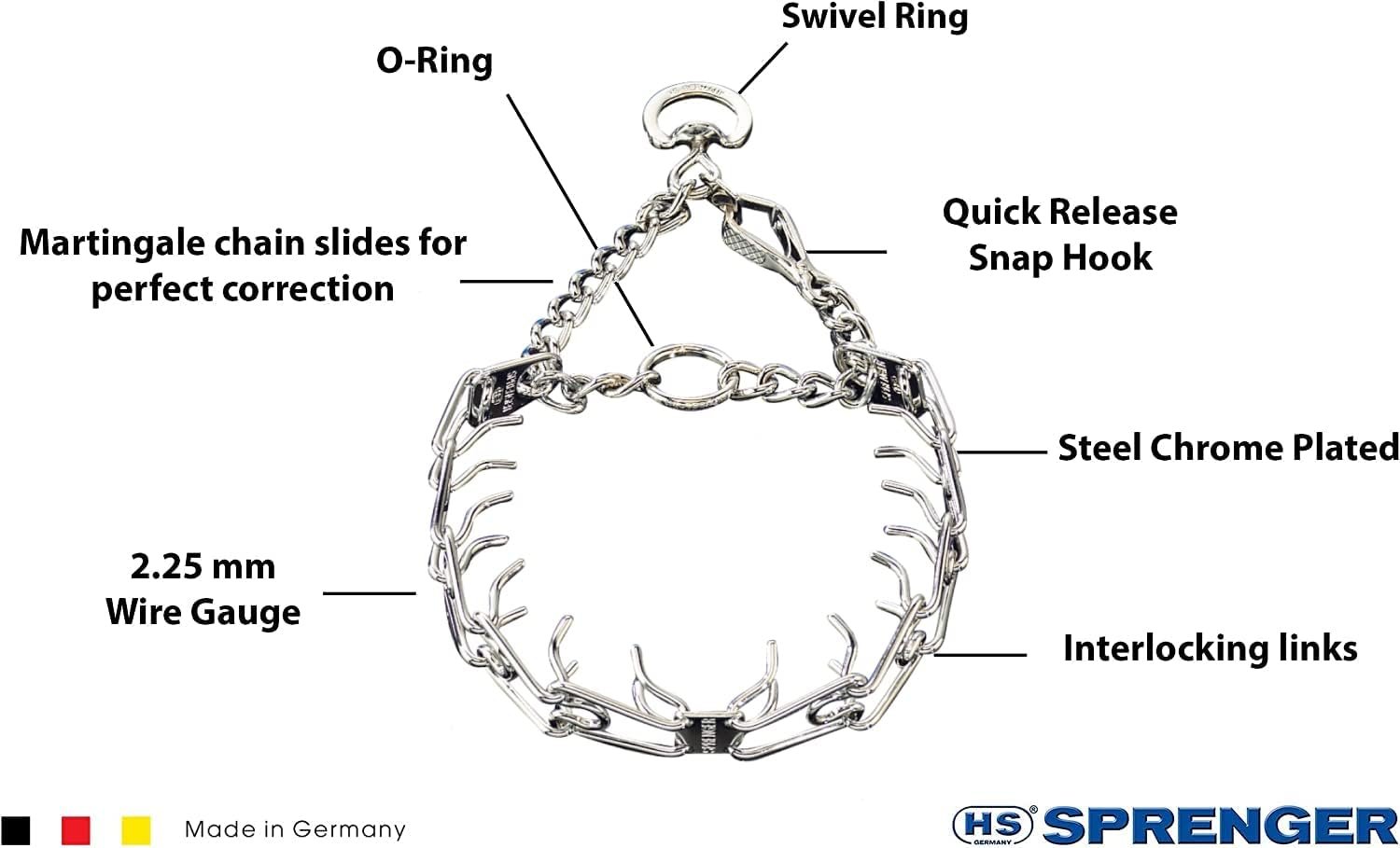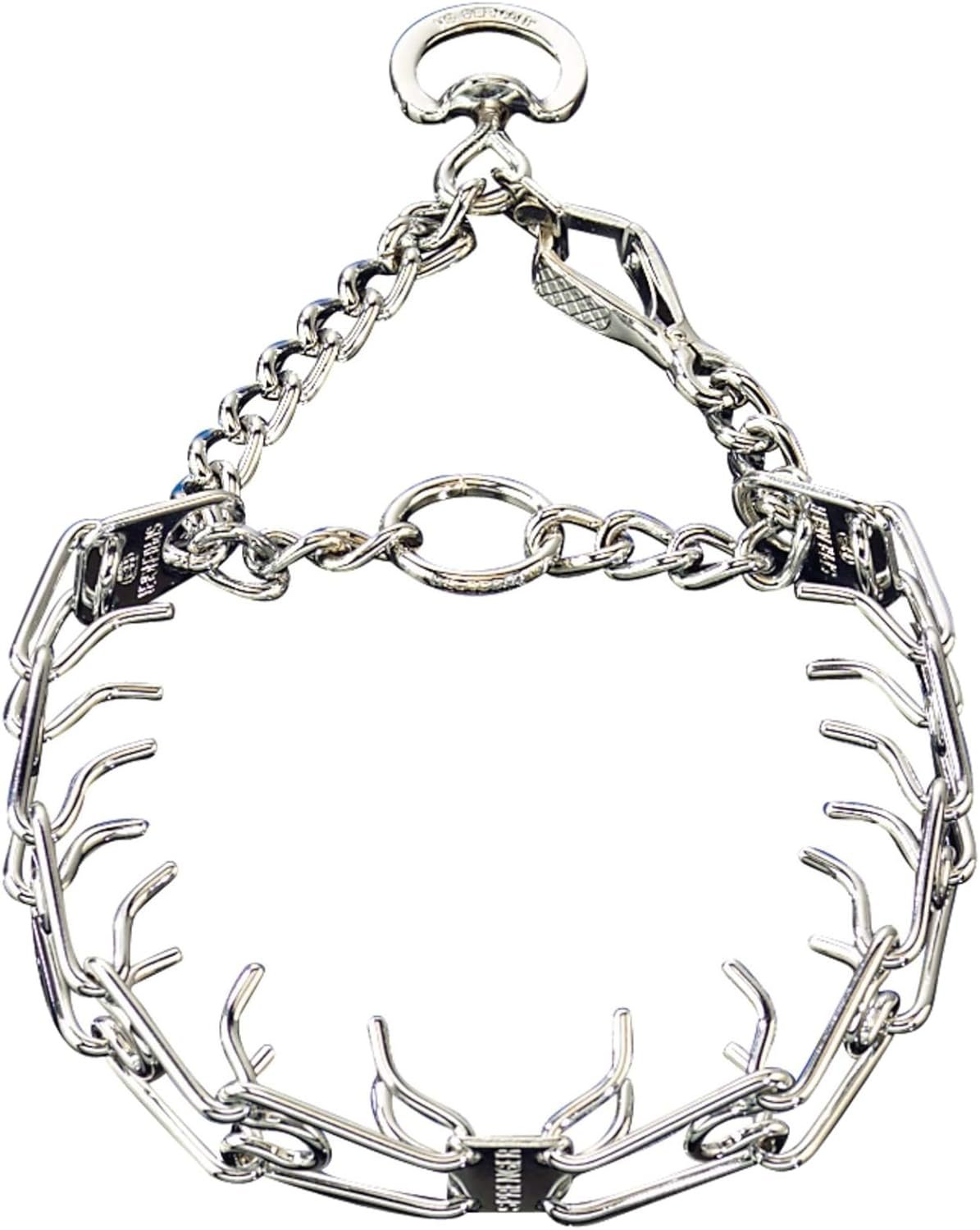 Easily Adjustable: It is an effective and useful management tool for gaining control at any phase of basic obedience training, an essential education that every dog deserves. The collar fits snug and high on your dog’s neck just behind the ears. Made of high-quality stainless steel, the size of this collar can be adjusted by adding or removing the links individually.
