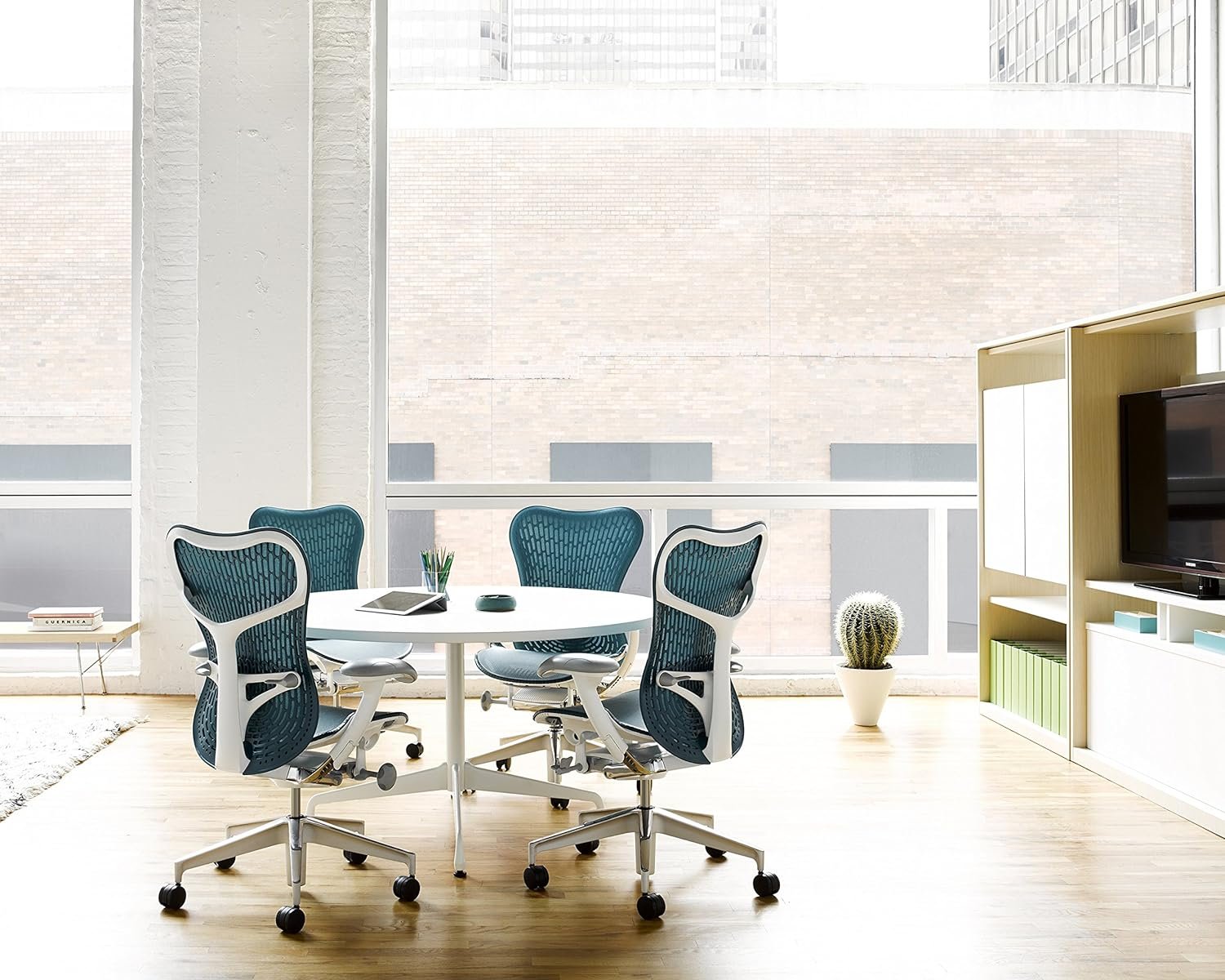 International design firm Studio 7.5 teamed up with Herman Miller to create an office chair that supports our evolving work culture. They noted that people today are constantly in motion as they work on their laptops and mobile devices. Mirra 2 is designed to provide support that moves with them. This dynamic support begins with the Butterfly Back seat that provides ample support, complete with gradated cutouts that flex for improved movement and circulation, a lumbar brace for your lower back and AireWeave 2 mesh that helps distribute weight and keeps you cool. In addition, Mirra 2 offers a passive harmonic tilt mechanism that allows natural reclining, four-stage FlexFront for altering seat depth and tilt tension knob for regulating seat give. Despite being packed with features, Mirra 2 has a lean, athletic form. It advances Studio 7.5’s philosophy that “every molecule counts” by striving to use less material to achieve maximum performance. An environmentally sensitive design, Mirra 2 is made largely of materials that are recyclable at the end of its useful life.