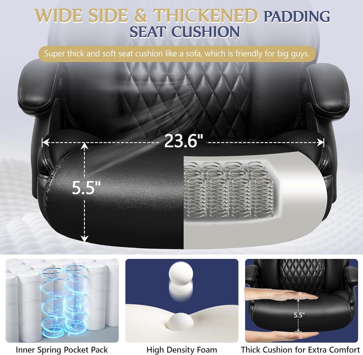 【Big and Tall Office Chair for Heavy People】Our this big and tall office chairs are designed to accommodate larger and taller body types. Provides more comfort and relief from back pain for those who are heavy. It is an executive office chair with a wider seating depth, larger dimensions, big size headrest, those provide a relaxing sitting experience for long hours working.
