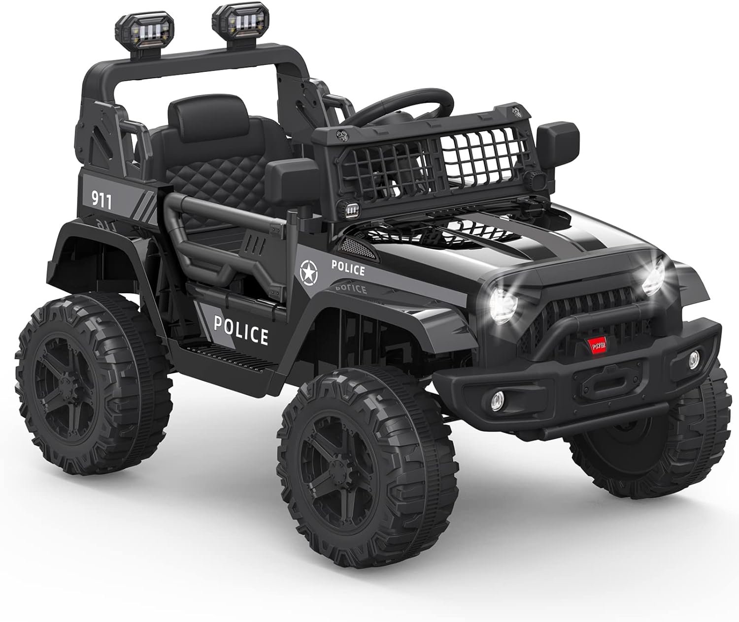 POWERFUL 12V & REALISTIC DESIGN – Adjustable seatbelt, bright LED headlights, lockable doors, and grid windshield for off-road style, with a 12V motor and traction tires to ride on different terrains.