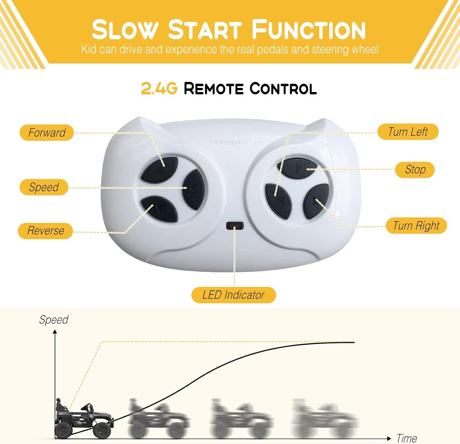 MULTI-FUNCTION CONTROL CONSOLE – Easy to start by one key. This electric truck features bluetooth speaker, horn, headlights and high/low speed function, which enables the kids can enjoy the real driving experience with this car.