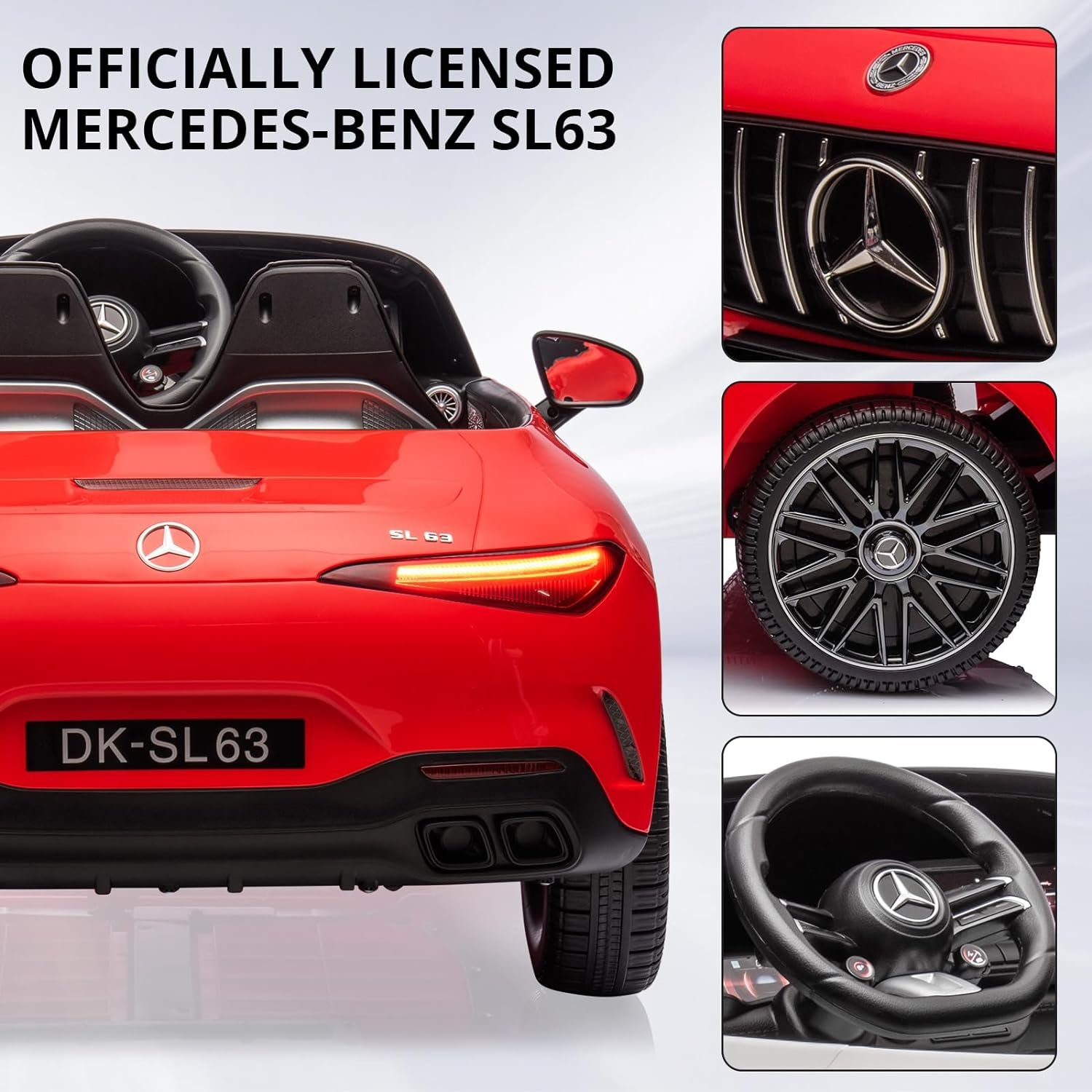 Hetoy Ride on Car for Kids 12V Licensed Mercedes Benz SL63 Electric Vehicles Battery Powered Sports Car with Remote Control, 2 Speeds, Sound System, LED Lights, MP3, Music, USB and Bluetooth, Red