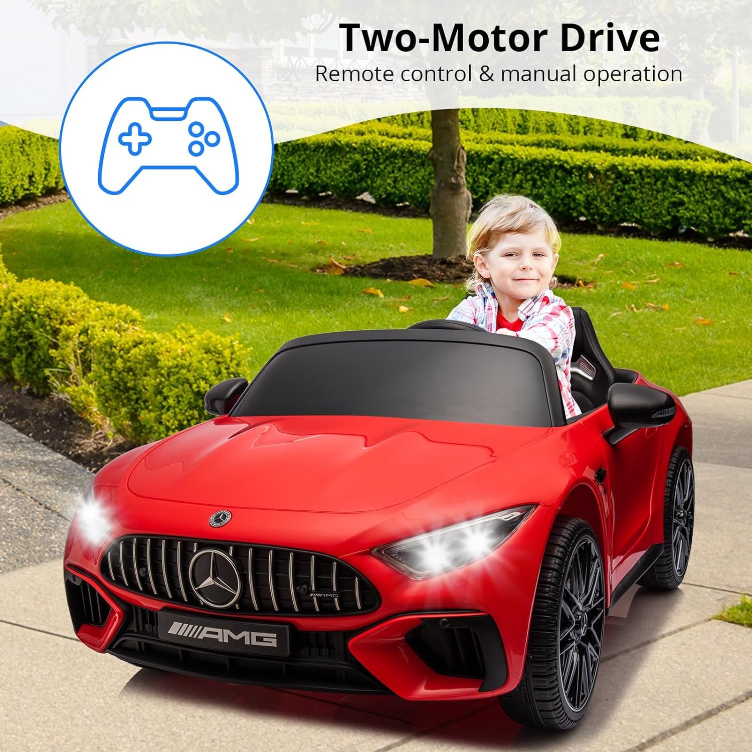 🏎[Licensed Mercedes Benz] Officially licensed, this Mercedes Benz ride-on car has LED headlights, horn and engine sounds, and doors that swing open just like the real Mercedes Benz. Battery charging time is 8-12 hrs,using time is 40-50 mis.