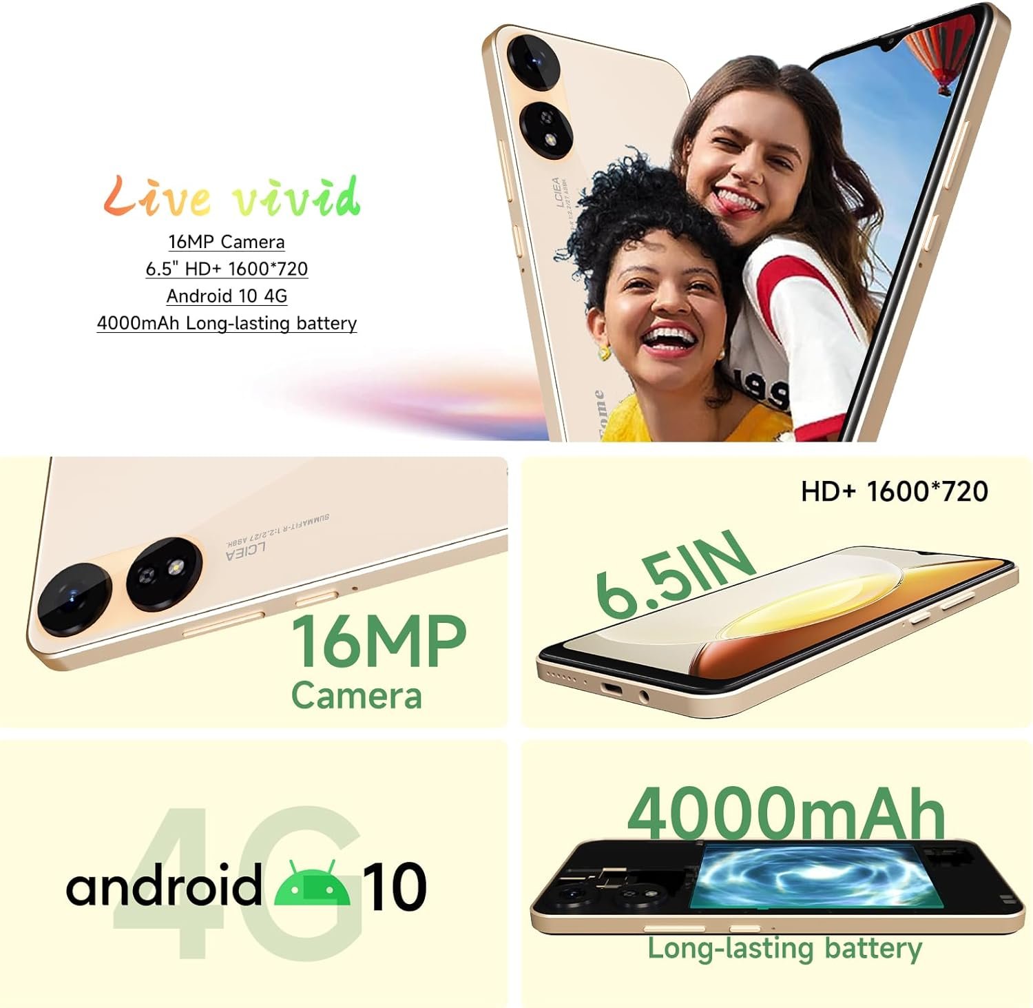「16MP Main Smart Phone Camera」This unlocked smartphone is equipped with a rear 16MP main camera and a 5MP front camera, making it a great expert at recording beautiful moments in life.