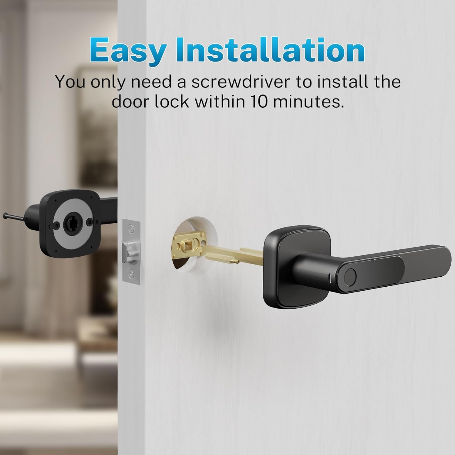 Easy Installation: Installing the biomectric door lock within minutes using a screwdriver. It fits most US doors and can easily replace existing door locks. The product comes with detailed installation steps and APP control steps.