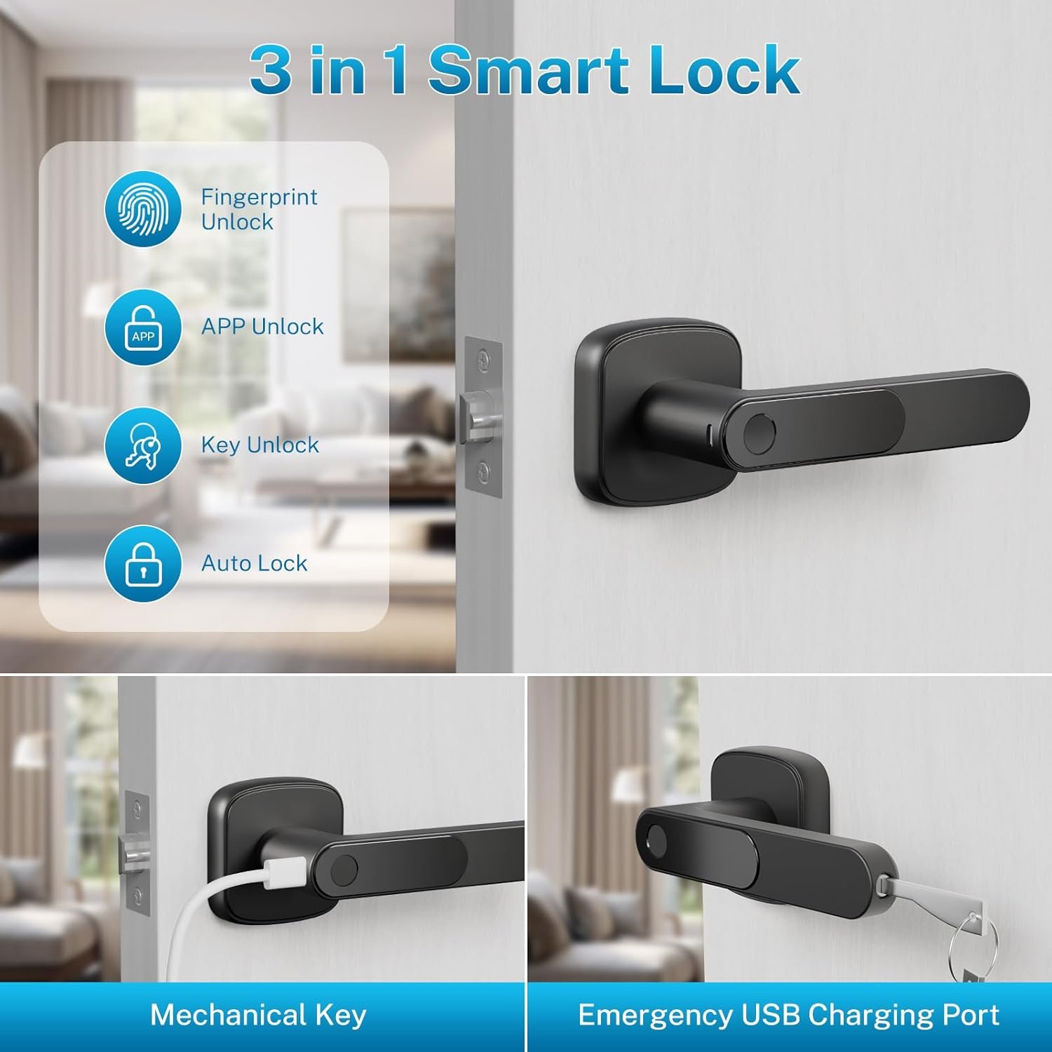 3-in-1 Smart Lock: HIDALIFE smart door hanlde offers three convenient unlock options in a single lock, fingerprint recognition, App control, or mechanical keys. Perfect choice for keyless entry and security for your door.