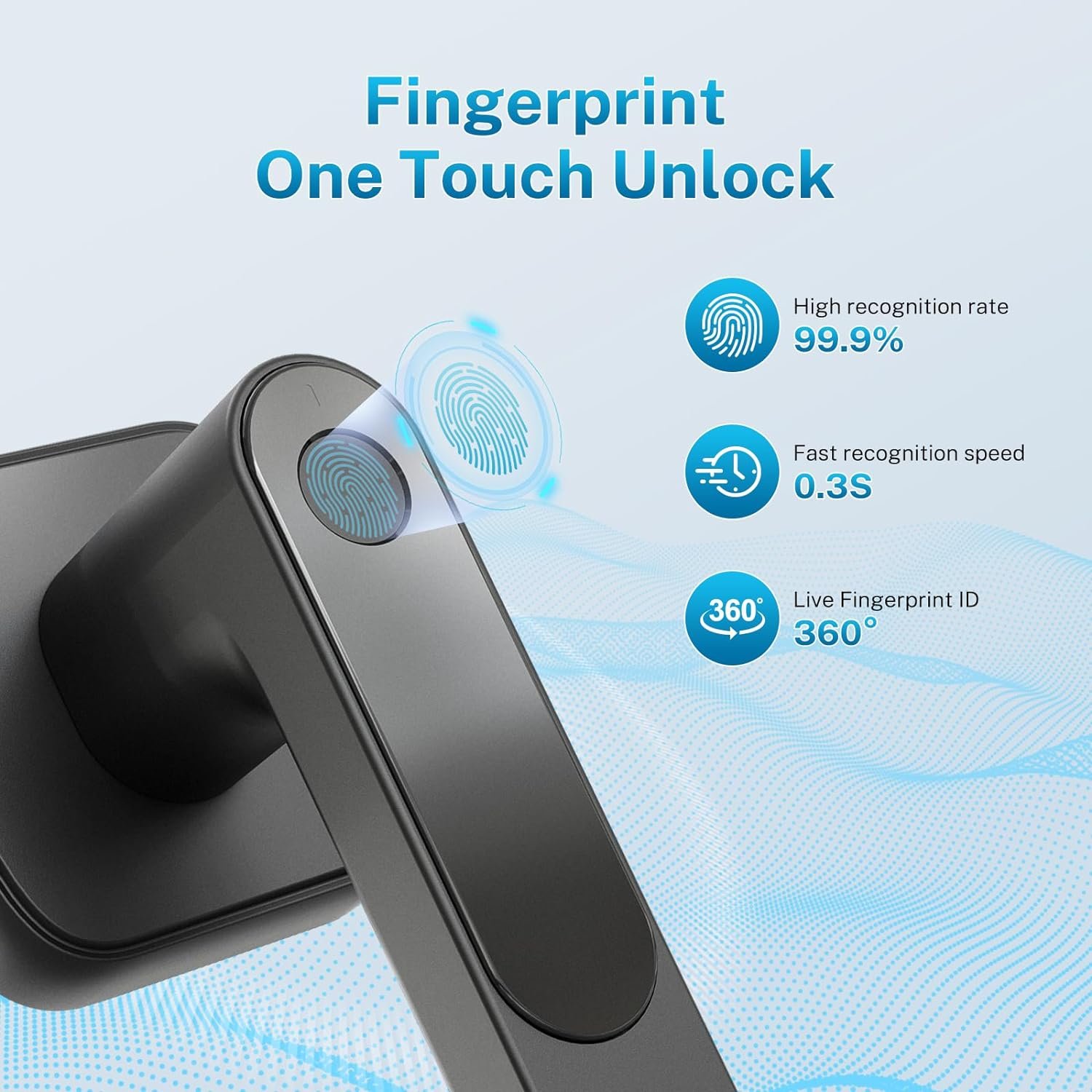 Accurate Fingerprint Recognition:This smart door lock are quipped with smart Fingerprint recognition sensor, recognition accuracy up to 99.9%. Simply put your finger on the sensor to unlock the door within 1 second.
