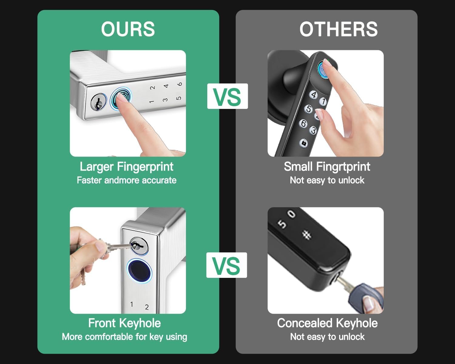 【3 Ways to Unlock】Fingerprint + Passcode + Mechanical Keys.