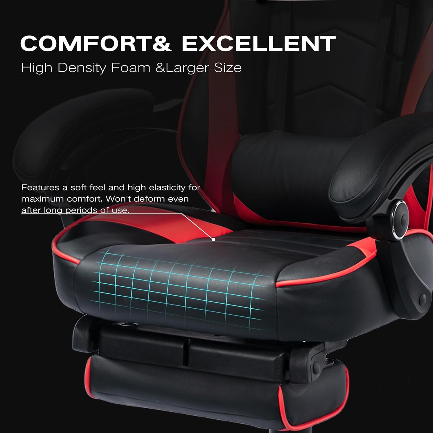 Ergonomic Design: The strong metal frame promotes a comfortable seated position, ensuring maximum comfort during long hours of gaming or work. The thick padded back and seat provide unparalleled comfort, making you feel like you’re sitting in a racing car.