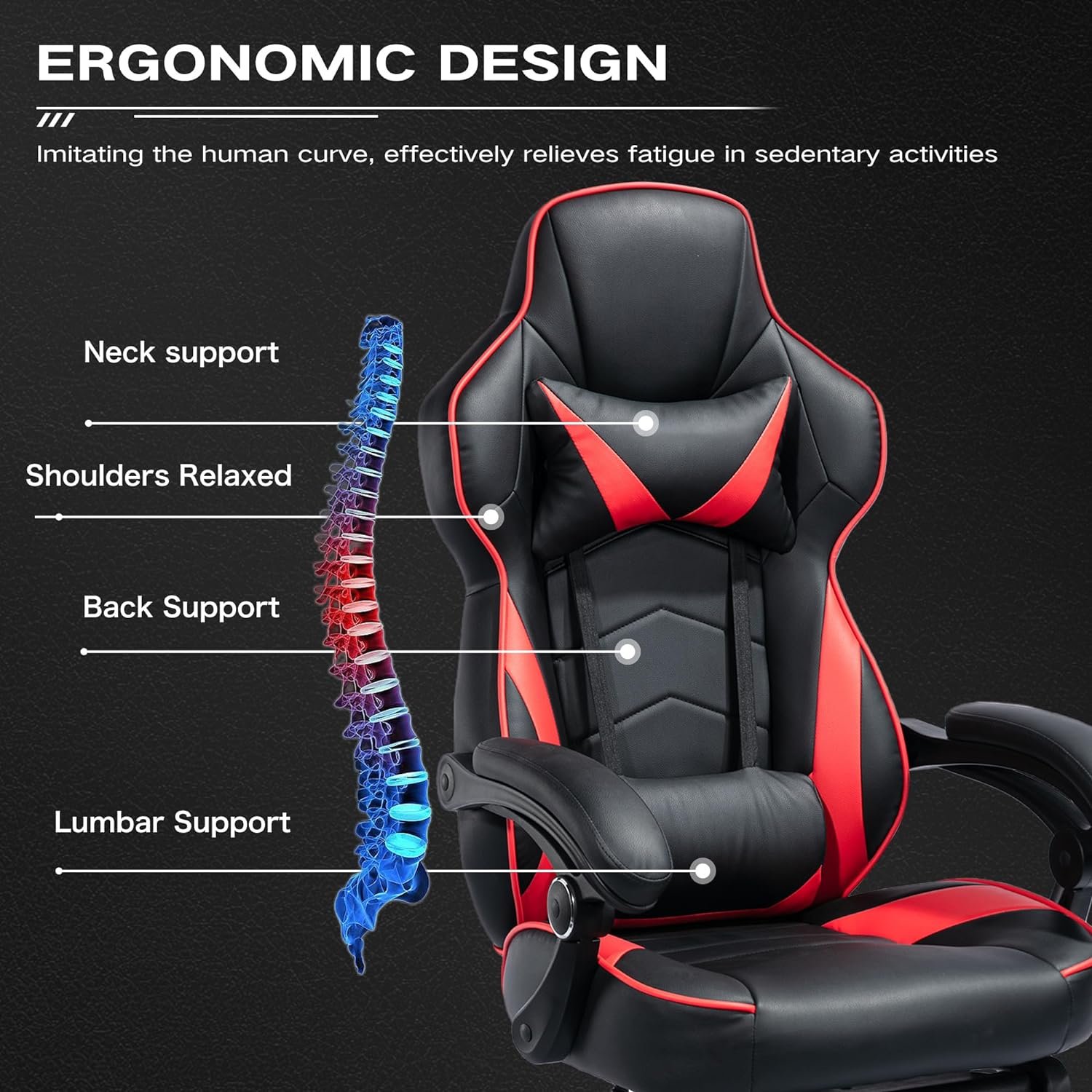 Versatile Functionality: This gaming chair is perfect for working, studying, esports, and gaming. It features a 360-degree swivel, 90° to 160° backward movement. The chair is suitable for different desktop heights and comes with a comfortable lumbar pillow for when you need to take a break and relax.