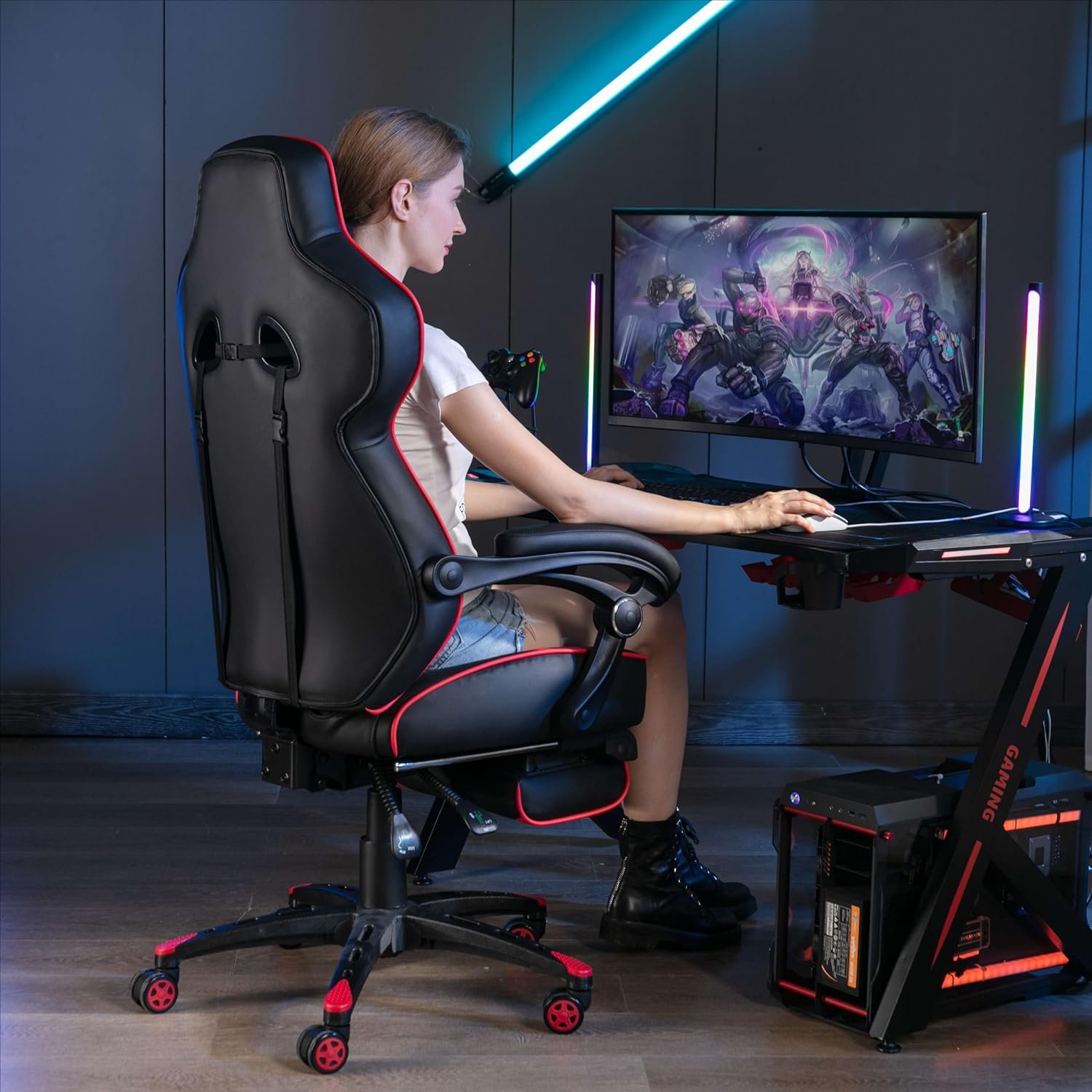 Upgrade your gaming or work experience with a chair that’s not only about functionality but also about exceptional comfort and style. Our chair offers a sanctuary for those who spend hours in front of their computer, boasting a footrest and lumbar features that promote relaxation and wellbeing. With a build quality meant to resist the test of time and use, this chair is the steadfast companion you need for every intense gaming battle or productivity marathon.