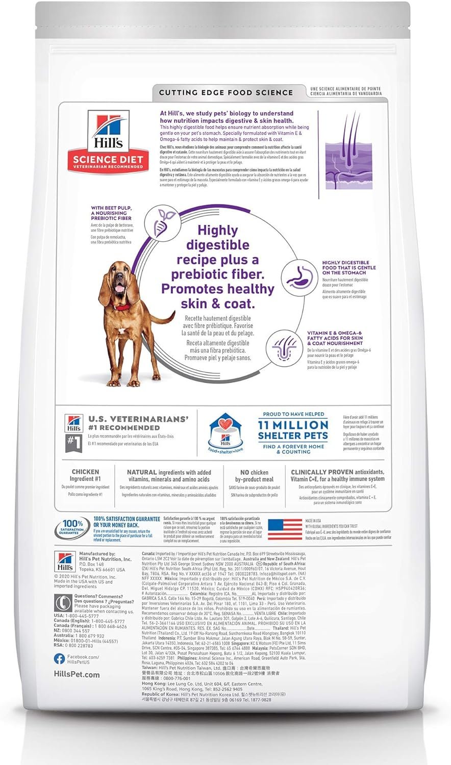 Your grown dog wants to feel as good as he or she looks. Hill’s Science Diet Sensitive Stomach & Skin Large Breed Dog Food is specially formulated for optimal digestive health. This dog food for sensitive stomachs uses prebiotic fiber to fuel gut bacteria and support a balanced microbiome. In addition, this dry dog food made with natural ingredients also provides an excellent source of vitamin E and Omega-6 fatty acids to nourish your dog’s skin, and help maintain a healthy, shiny coat. This digestion care food is formulated with decades of cutting-edge research to be a great-tasting meal adult dogs can truly enjoy. There’s more to love with the new look of Science Diet. Some of our products also have new names, new kibble shapes & new formulas.