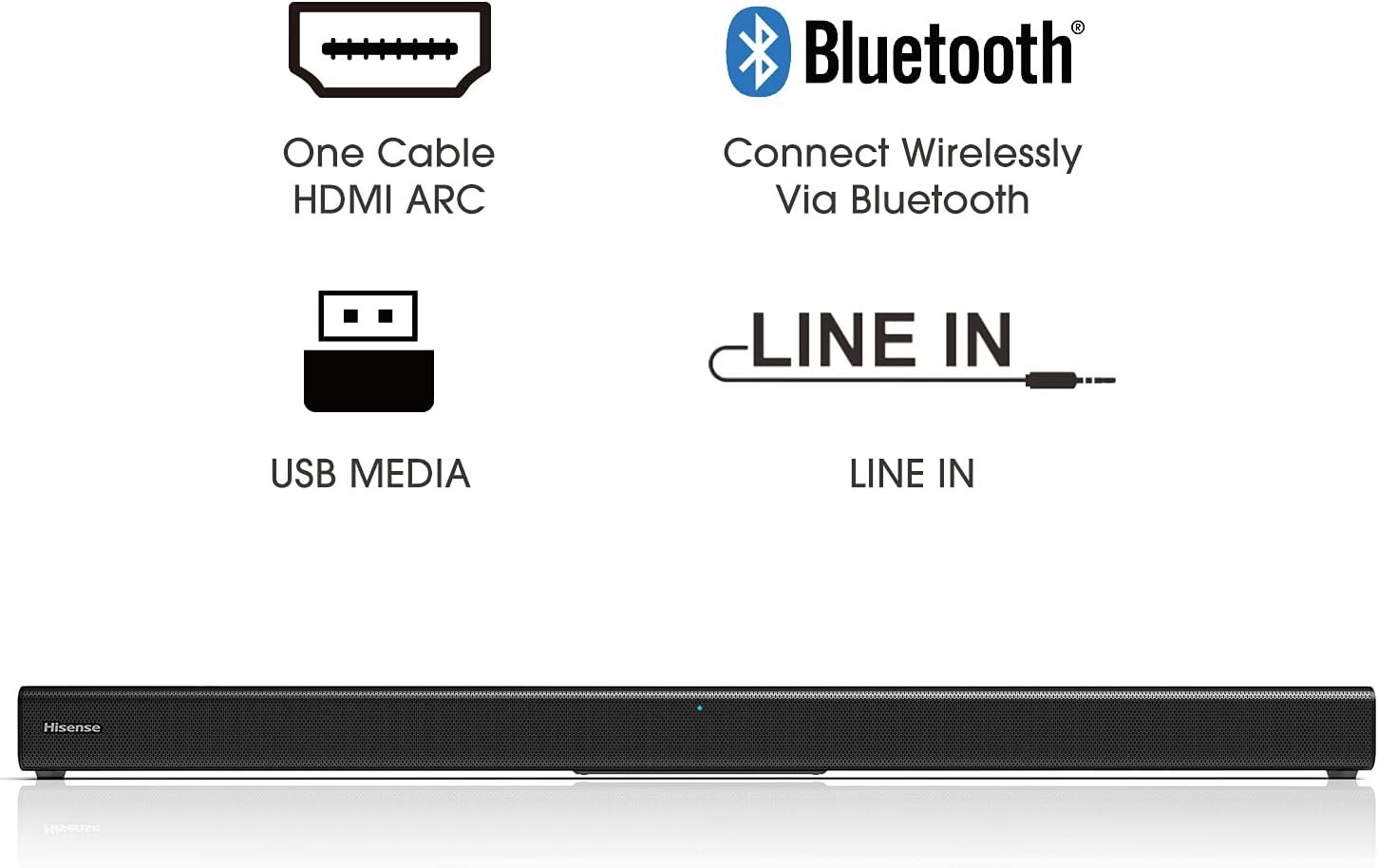 Easy Connectivity: With HDMI (ARC), the Hisense HS205 can connect to your TV through a single HDMI cable (included), connect wirelessly via Bluetooth, and control both with one remote. You’ll be enjoying better TV sound in minutes.