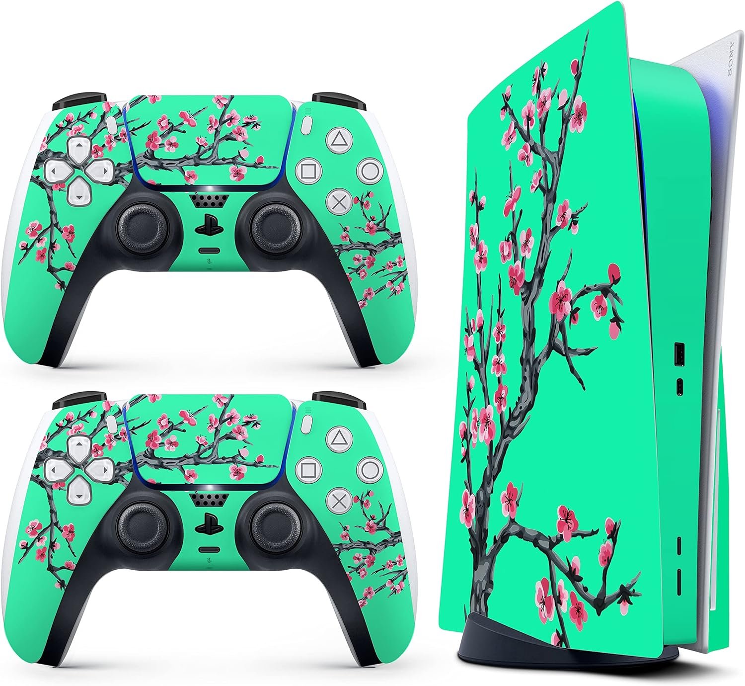 TEAL CHERRY BLOSSSOM – Decal stiker wrap for PS5 shows people that you are an in-style gamer. The moment you play the game with your partners is surely your best experience