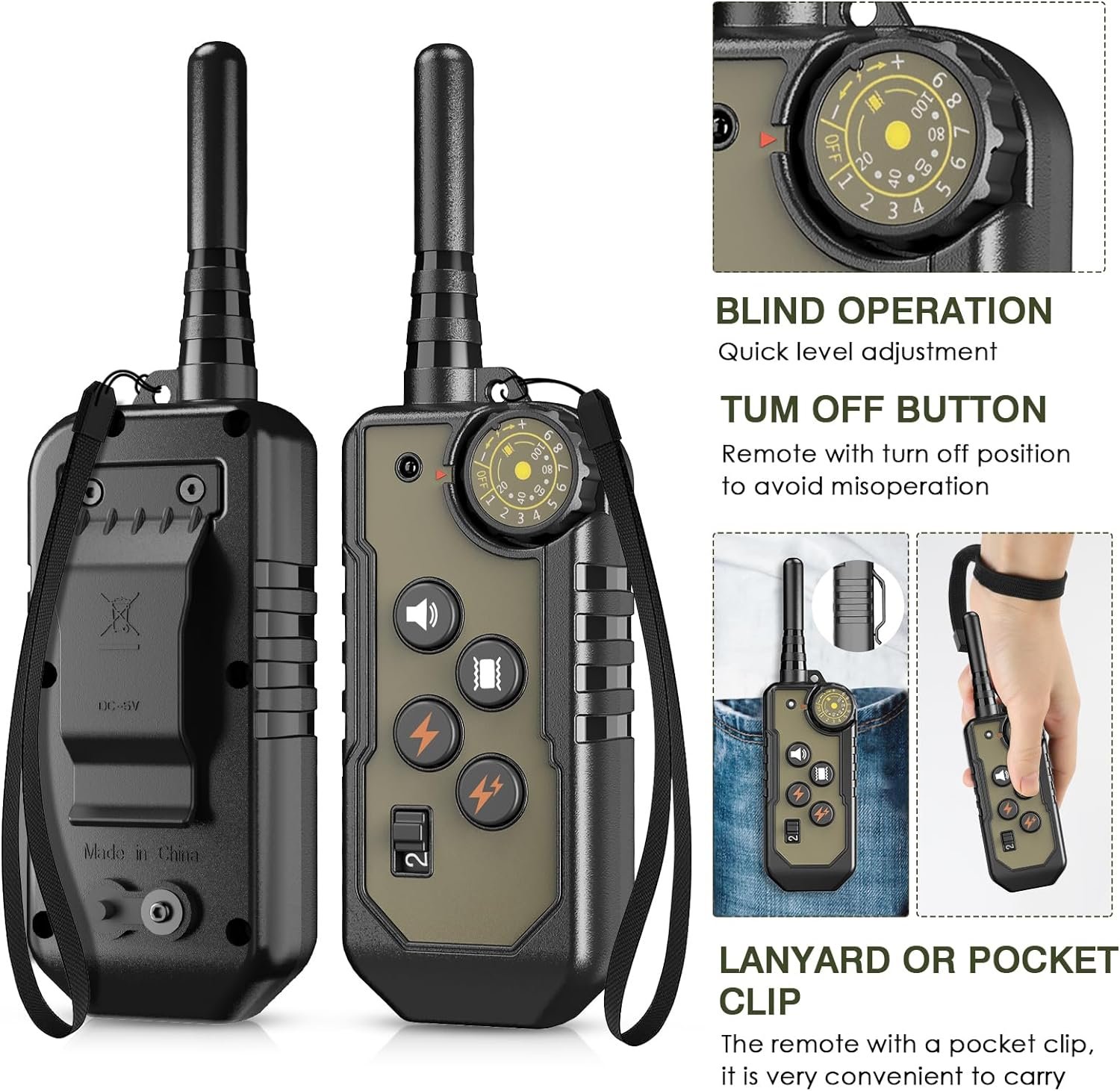 This dog shock collar can reach up to a 1000FT remote control range, so you can train your dog in the backyard, park, field, or beach, and so on. Let you enjoy training the dog anywhere.