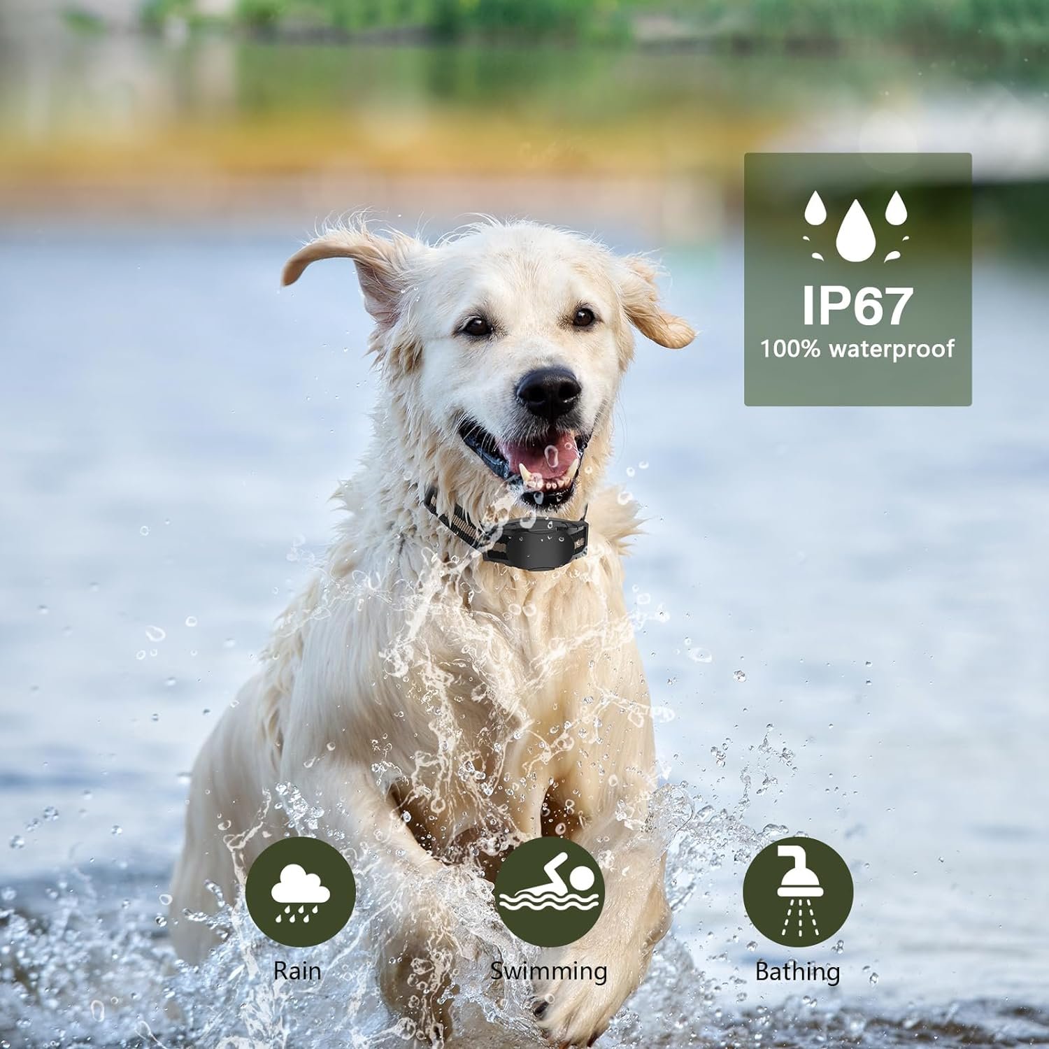 【Adjustable Collar & IP67 Waterproof Receiver】: The belt of the dog bark collar can be adjusted from 8 to 25 inches, suitable for small, medium, large dogs, 15-100lbs dogs. And the dog collar receiver is IP67 waterproof, allowing the dog submersible to 9 ft underwater, so let your dog enjoy swimming, showering, and playing in the rain. (Note: The remote is not waterproof. Please make sure the receiver charging port is sealed before the dog enters the water.)