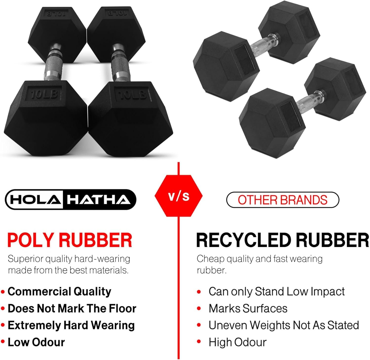 Durably Made: Crafted from robust poly rubber, these dumbbells are built to withstand the impact of rigorous workouts, ensuring longevity and reliable performance