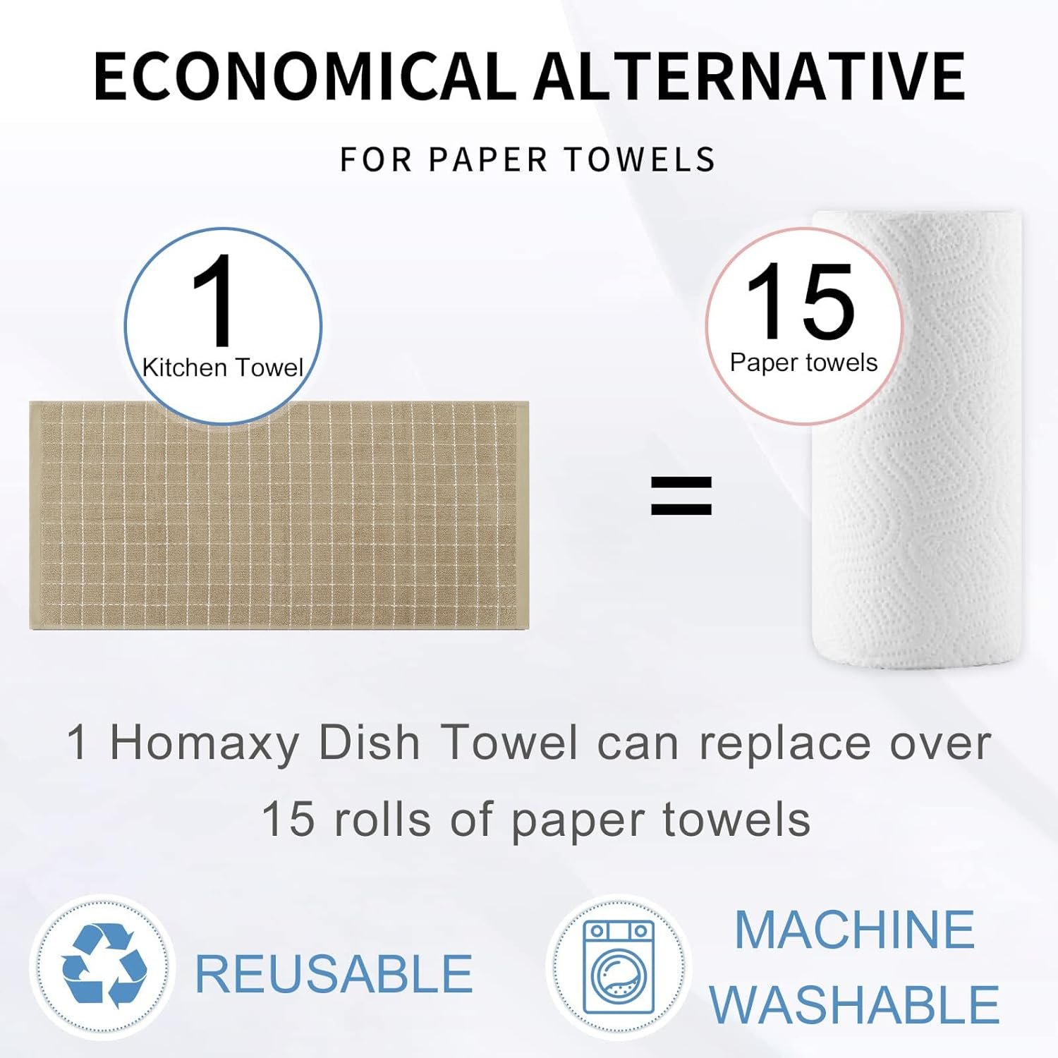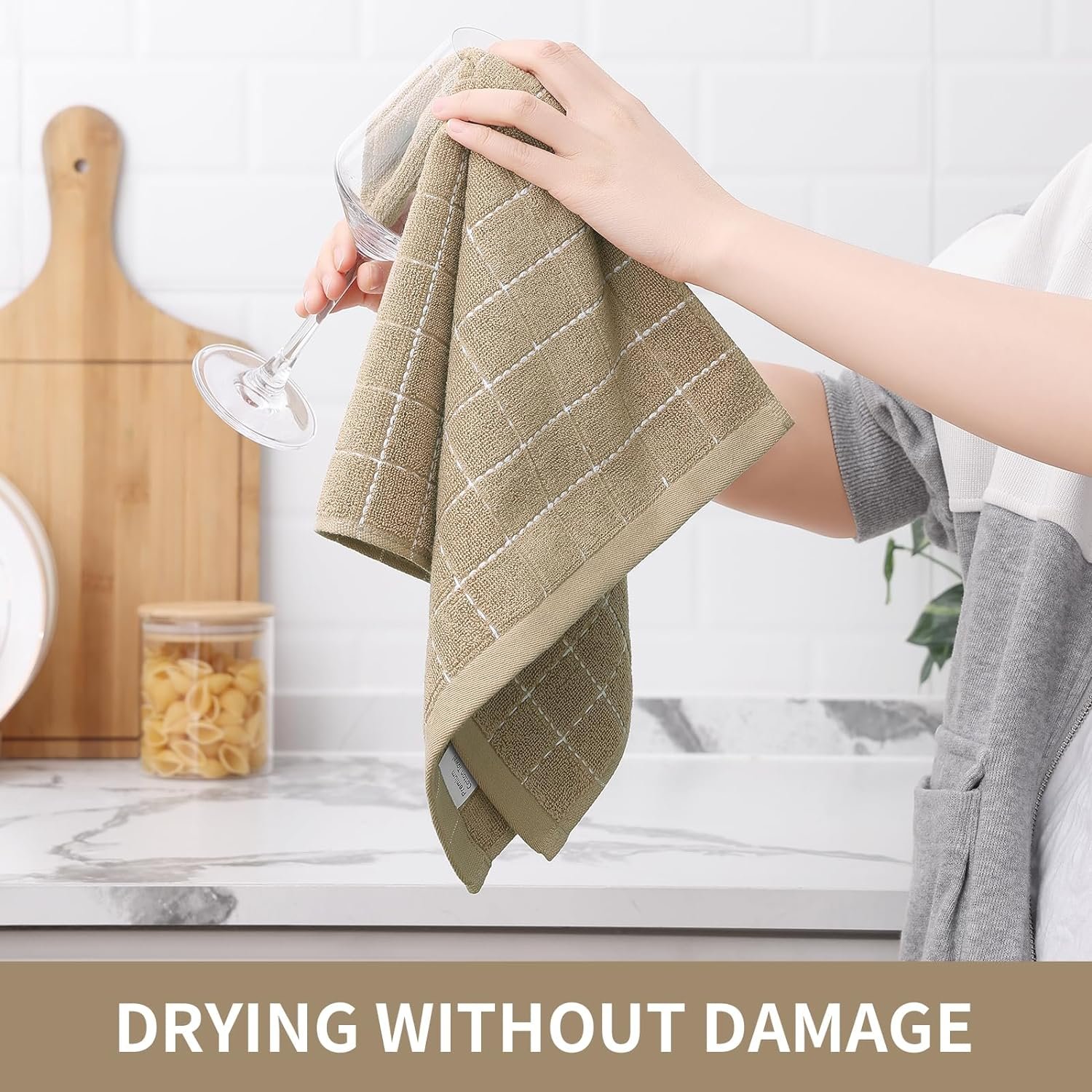 SUPER ABSORBENT: These dish towels are designed with upgraded terry structure, are lightweight, highly absorbent, and dry quickly. They can easily absorb plenty of liquid or wipe oil stains.