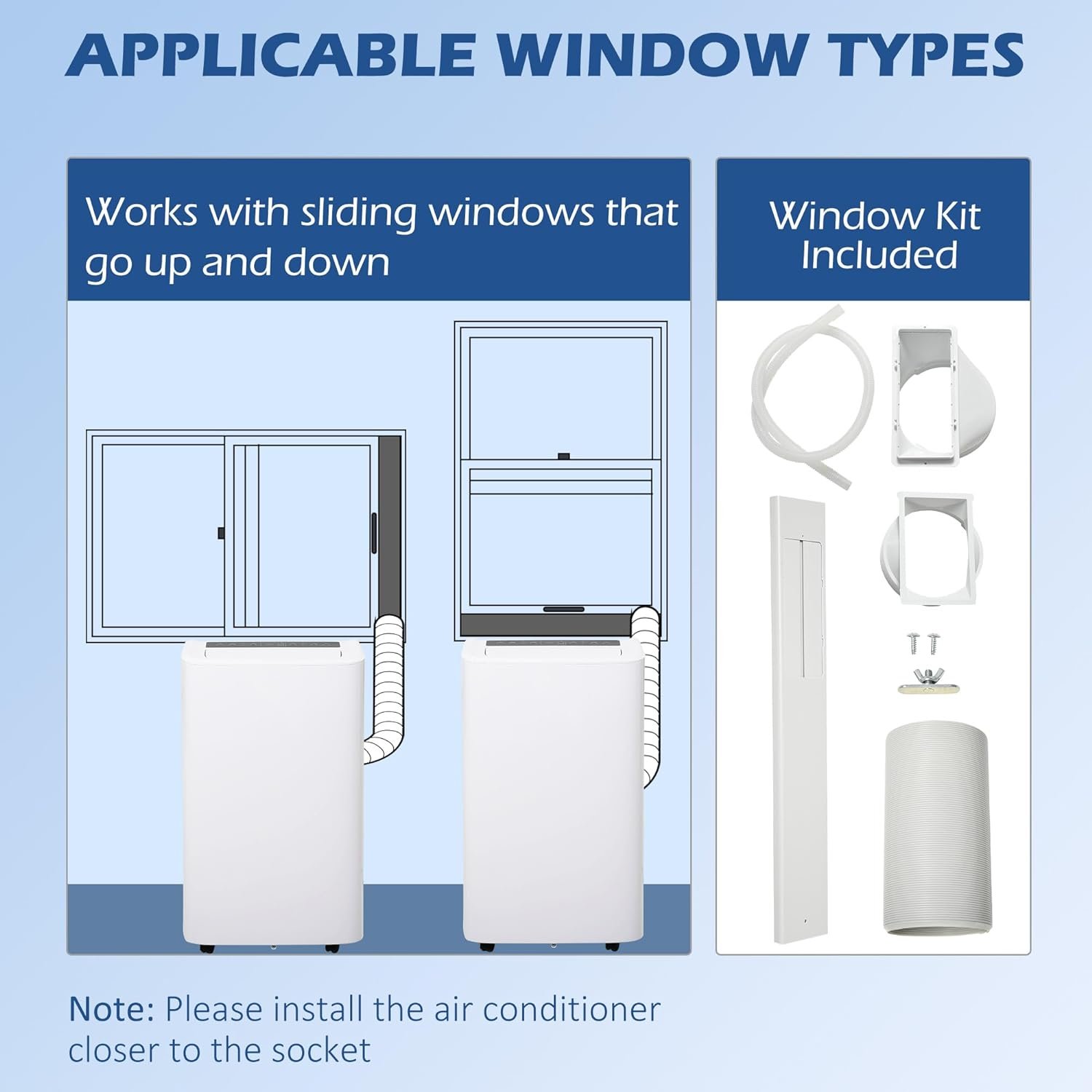 HOMCOM 12000 BTU Portable Air Conditioner for Rooms Uo to 549 Sq.Ft., 4-in-1 Mobile AC Unit with Dehumidifier, Cooling Fan, Sleep Mode, Remote Control, 24H Timer, Window Installation Kit, White