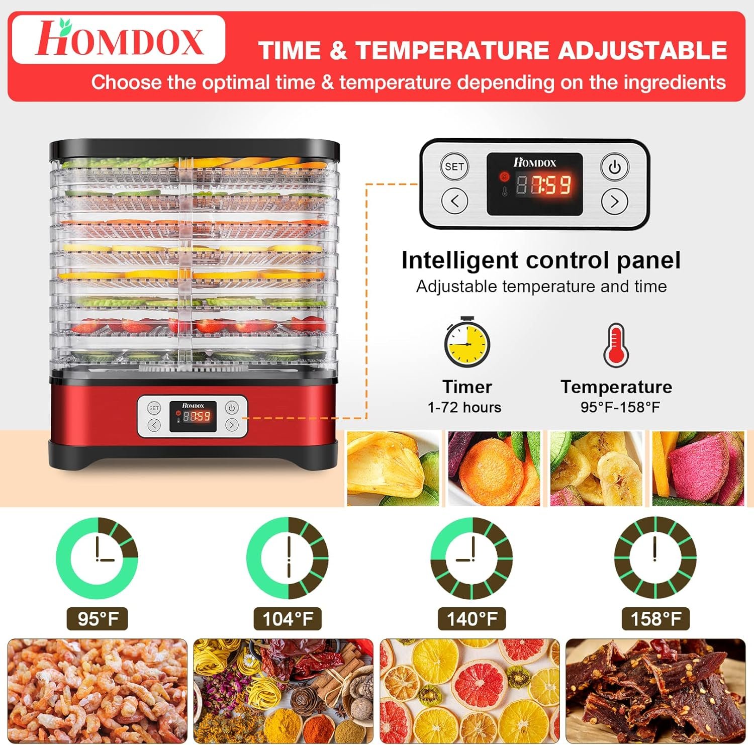 【Nutritious Snacks】Suitable for drying herbs, flower tea, vegetables and making jerky, fruit rolls, pet snacks. Enjoy delicious and nutritious pure natural snacks. ⚡Homdox Support: Please contact us for a free replacement if you receive broken trays!