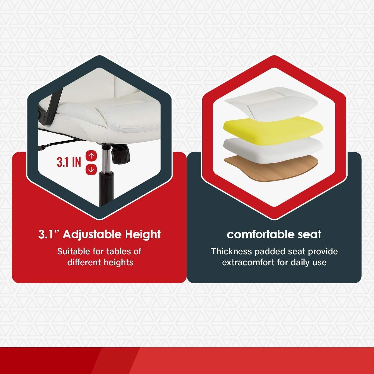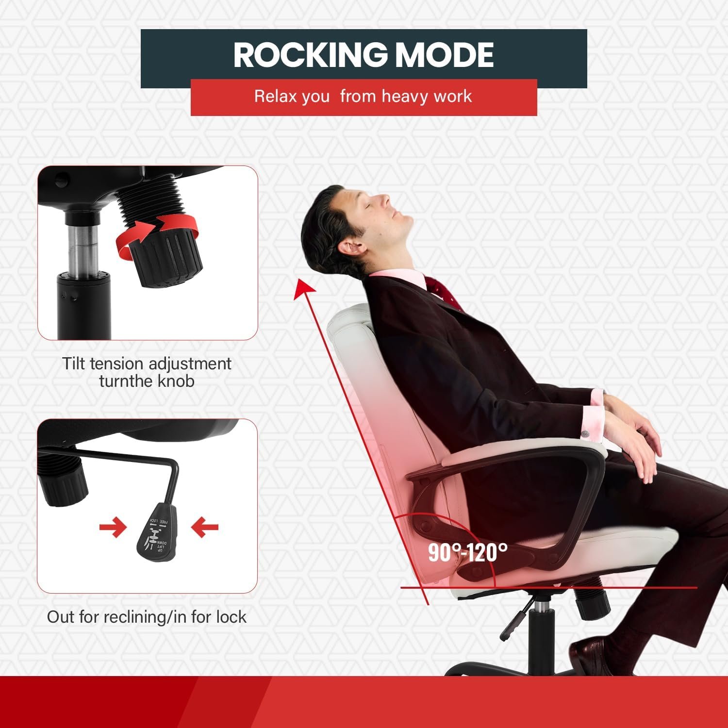 ❤COMFORTABLE THICKNESS: NOT PRONE TO DEFORMATION – Office chair have excellent breathable PU leather design, maintain the air flowing naturally in the computer chair seat area keep the sweat and back were not overheating.