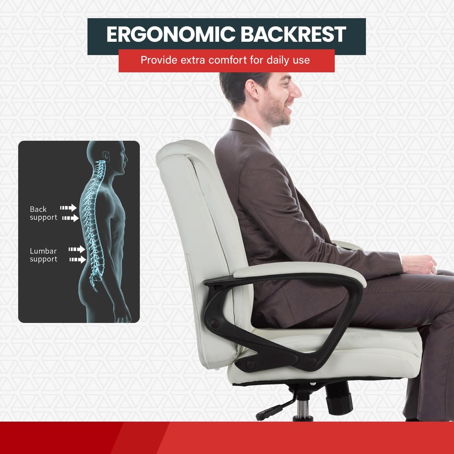 We recommend our BestOffice leather office chair, it’s features wide seats/back for extra comfort on those long working days. An easy opportunity to eliminate any back pain that you may experience due to sedentary sitting. This computer chair was designed with your comfort in mind. It will help improve your posture.