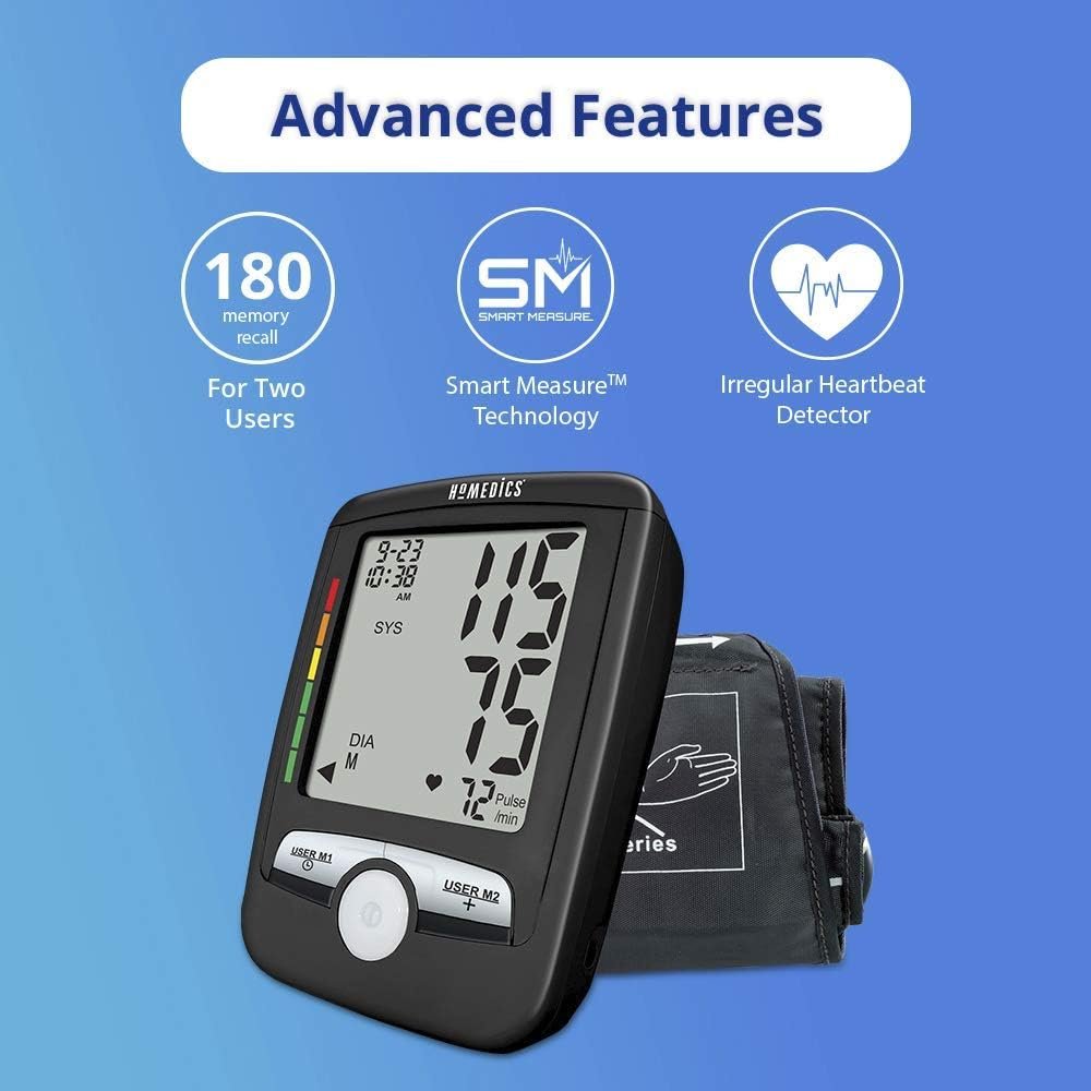 SMART MEASURE TECHNOLOGY – Delivering a personalized, accurate and comfortable measurement, this digital blood pressure monitor features advanced technology to automatically inflate and deflate at the appropriate level.