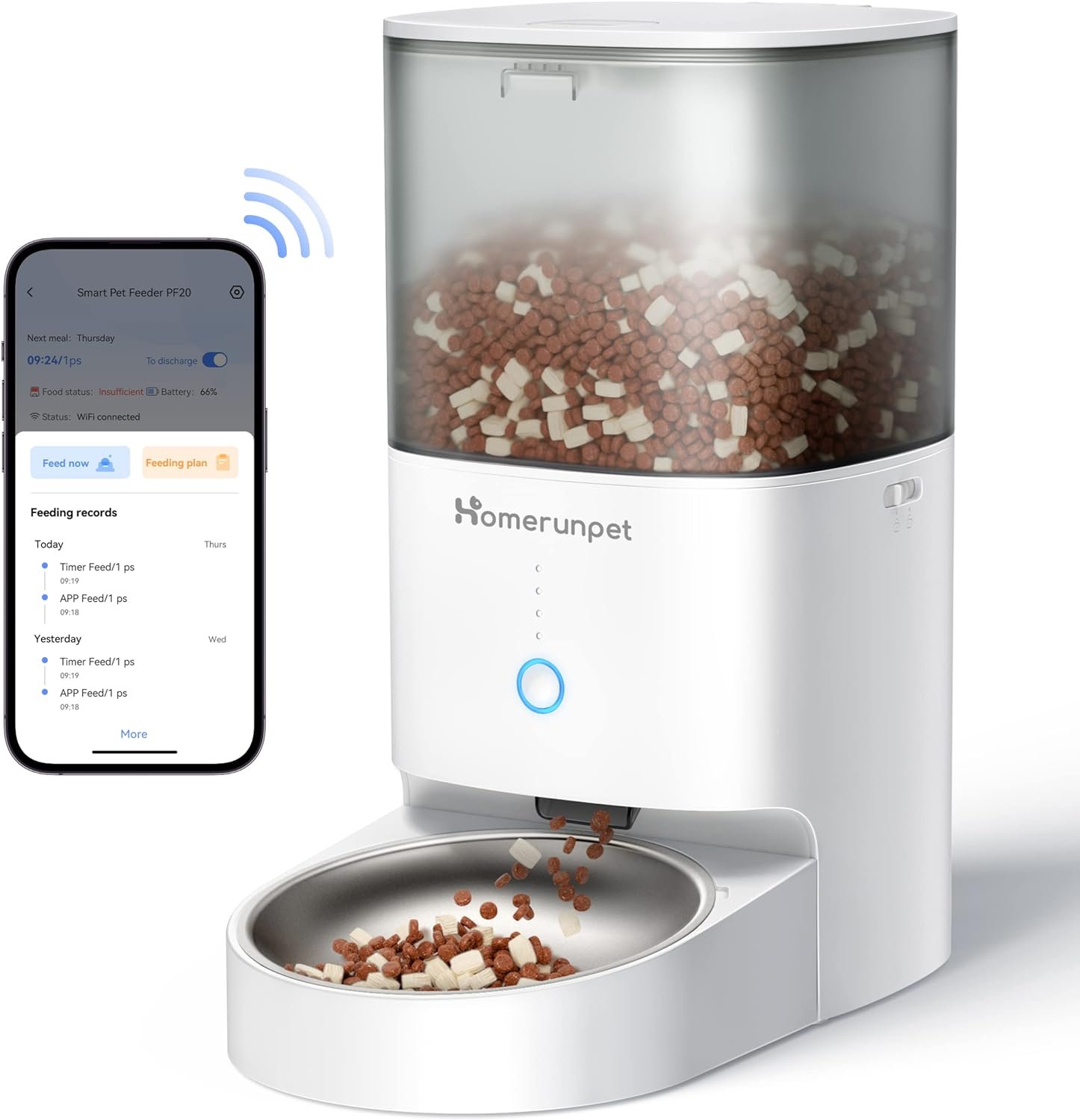 Smart Feeding for Busy Owners: Dual Bluetooth and WiFi connectivity guarantees a successful initial App connection. Schedule up to 8 meals and 1-20 portions per meal while tracking feeding records via the app, ensuring a regular and healthier diet with this WiFi cat feeder even when you are not around (Please ensure your network supports 2.4GHz WiFi).