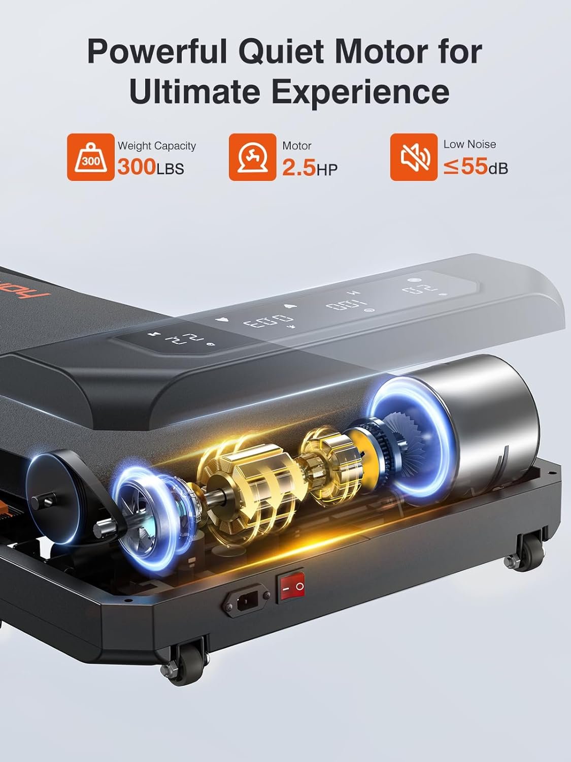 🏃♂️ 𝐏𝐎𝐖𝐄𝐑𝐅𝐔𝐋, 𝐒𝐓𝐀𝐁𝐋𝐄 𝐀𝐍𝐃 𝐐𝐔𝐈𝐄𝐓 𝐌𝐎𝐓𝐎𝐑 : HomeTro portable treadmill has the latest customized 2.5 horsepower motor, the maximum capacity is up to 300LBs, and provides strong, stable power and quiet operation. Whether you’re at home, an apartment or an office, you can enjoy a smooth and comfortable running experience without disturbing others.
