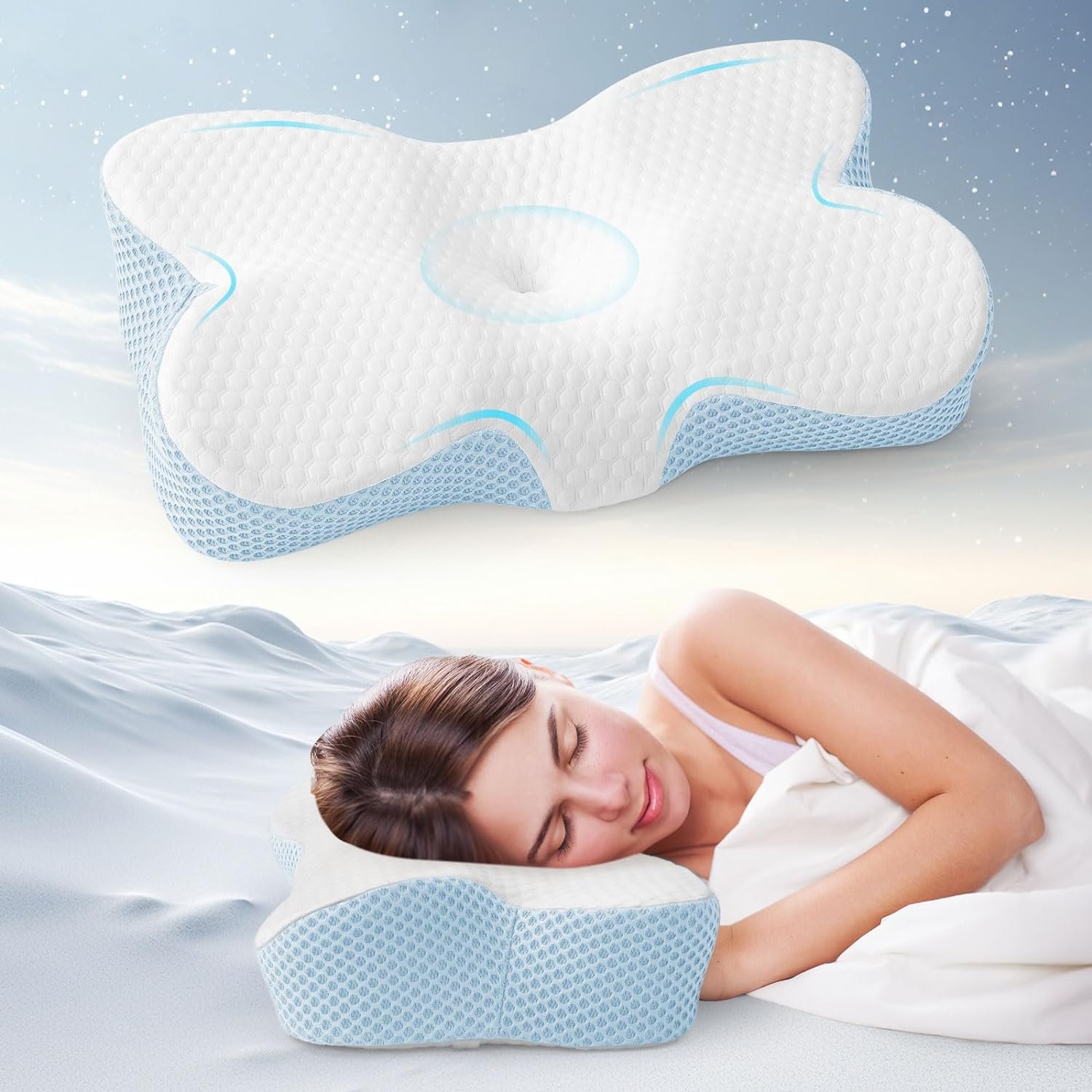 【NEWEST ERGONOMIC DESIGN】The newest ergonomically designed cervical contour memory foam pillow integrates 6 contour support areas scientifically. Providing soft comfy and firm support for neck, head, shoulders and arms precisely and perfectly. Reducing stress of cervical vertebra and spine during sleep. Improving sleep and relieving neck and shoulder pain. THIS PRODUCT IS NOT A MEDICAL PRODUCT.IF YOU NEED TO USE IT FOR REHABILITATION, PLEASE ASK YOUR DOCTOR FOR ADVICE.