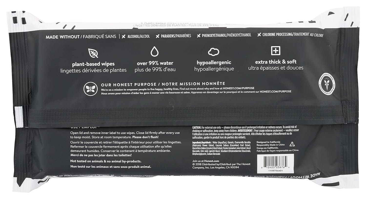 Honest wet wipes are thoughtfully designed and contain everything you need and nothing you don’t.