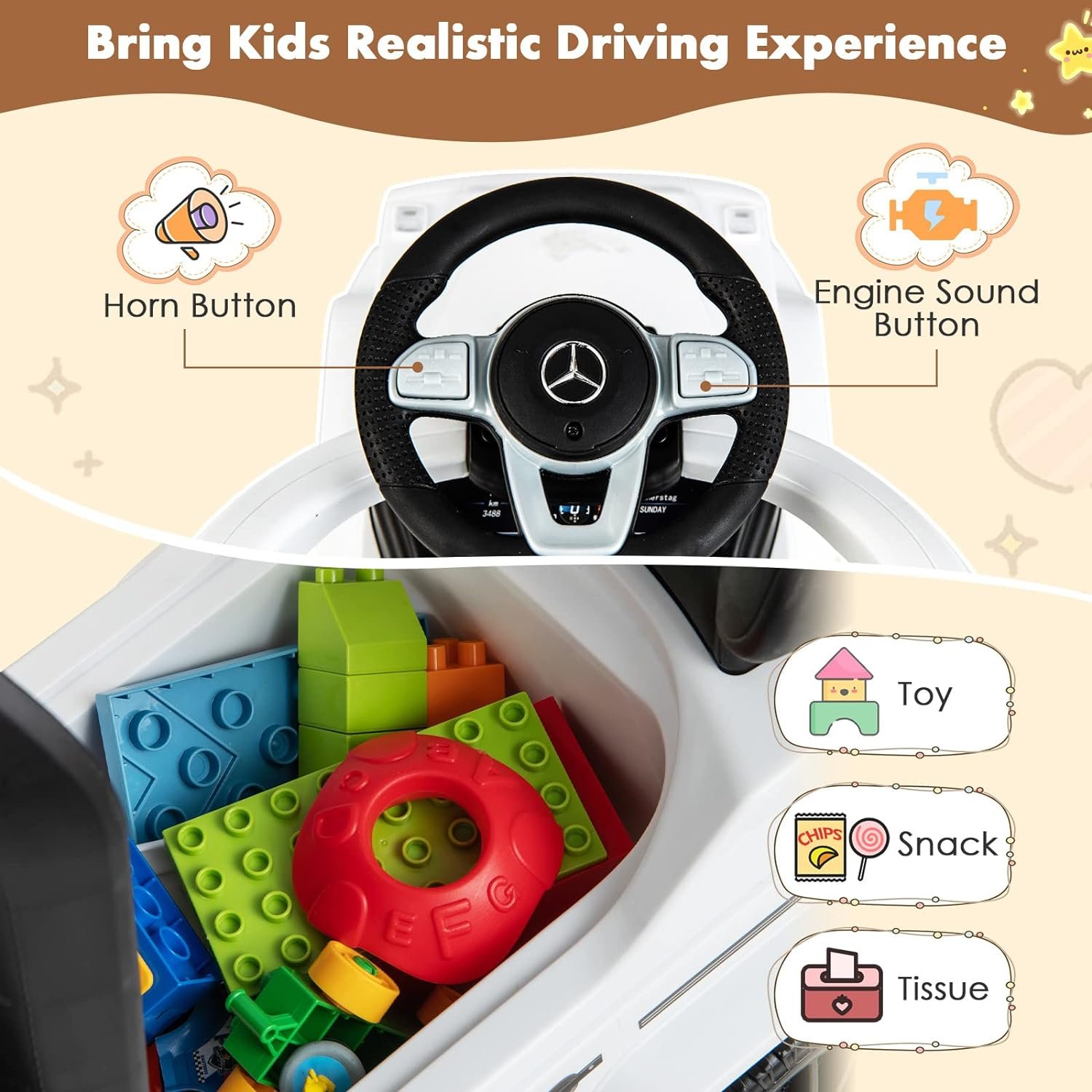 【Realistic Driving Experience for Endless Fun】This Mercedes Benz officially licensed push cars for toddlers has a realistic appearance, vivid horn and engine sound, which will attract toddler’s attention and add limitless fun to child’s riding. Let it accompany your kids and create cherished babyhood memories!