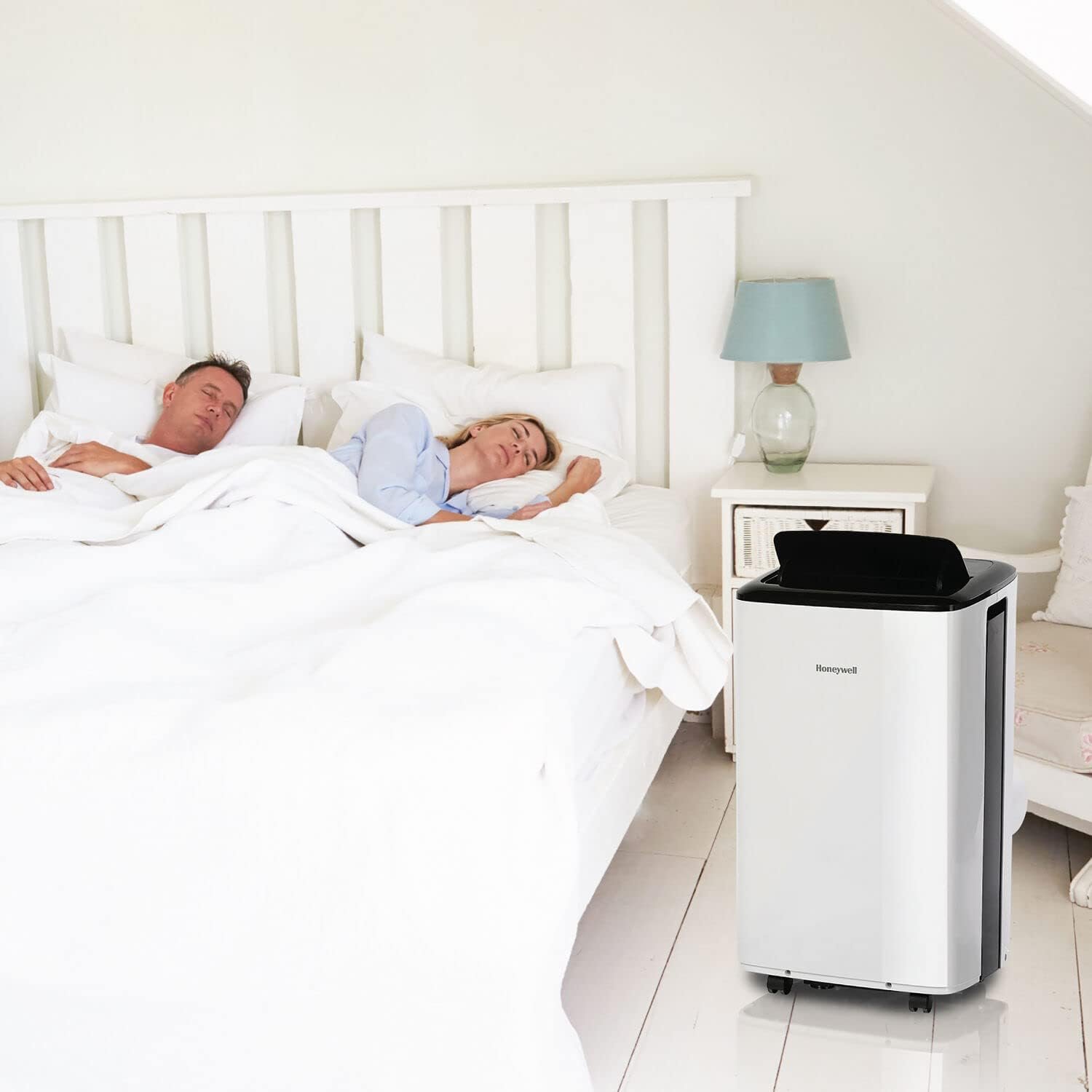 The 10,000 BTU Smart Wi-Fi Portable Air Conditioner from Honeywell offers the perfect balance of technology and functionality. This Wi-Fi enabled AC seamlessly integrates into your smart home ecosystem. With compatibility with Amazon Alexa voice commands, you can take control of your air conditioning from just about anywhere. No more interrupting your busy routine to adjust temperature or fan speed settings – simply use voice commands and let the air conditioner do the rest. The Smart Digital Thermostat takes comfort to new heights by automatically activating the AC based on pre-set room conditions. With the 24-hour timer and daily/weekly scheduling function available through the Honeywell Air Comfort App, you have complete control over when your AC operates. This AC unit also boasts being one of the quietest in its class. Say goodbye to obtrusive noise and hello to a peaceful home environment. Plus, with smooth-gliding wheels, effortlessly move this unit from room to room. Included with the smart portable AC are all the essentials you need, from the usual window kit accessories to the added bonus of window insulation tape, drain pan, and drain tube. Experience a new level of comfort and convenience with this smart portable AC from Honeywell.