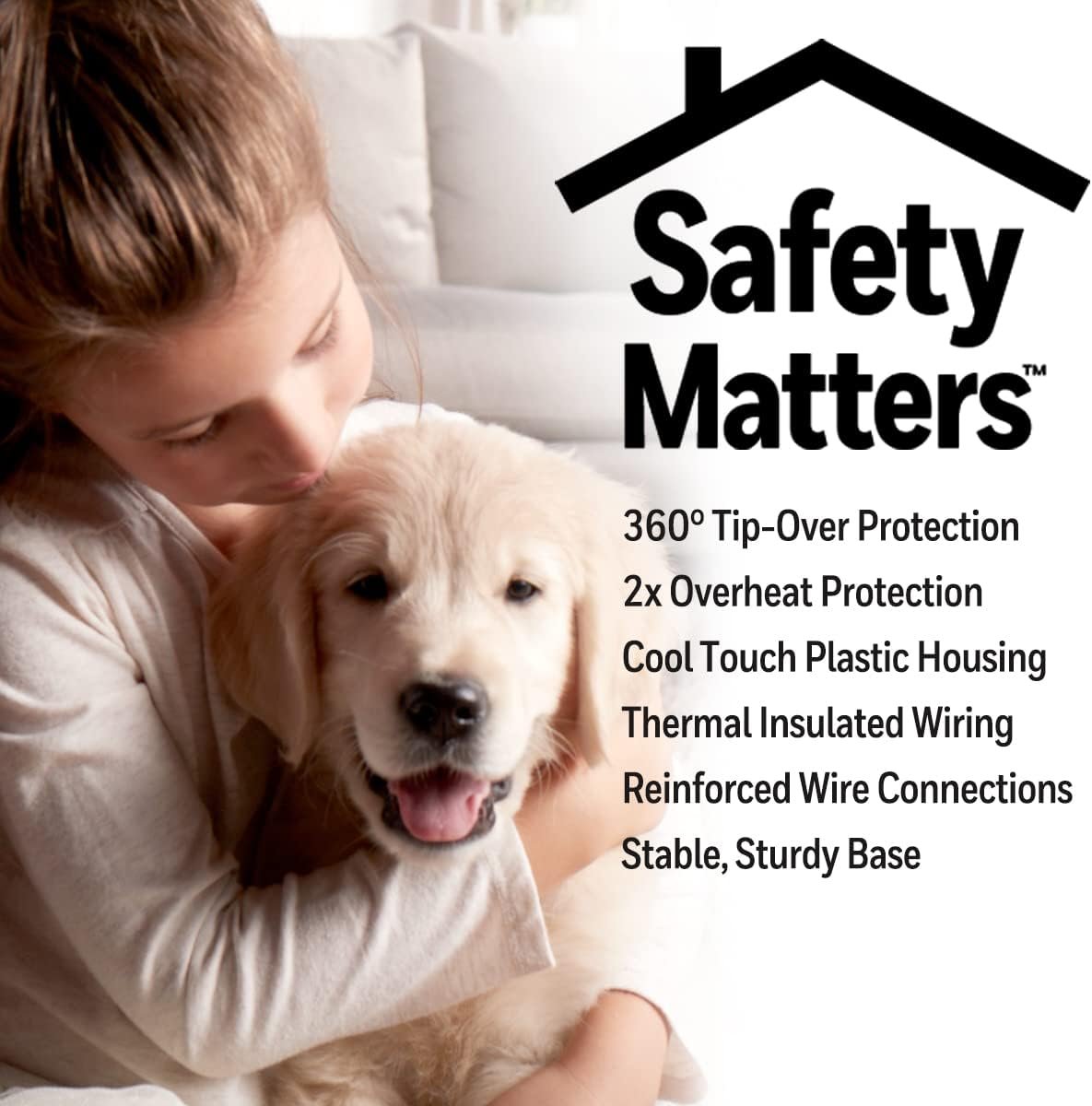 SAFETY MATTERS: This large room heater offers multiple safety options including 2x Overheat Protection, thermal insulated wiring and tip over protection. It also features an auto-off timer option and a permanent dust filter.